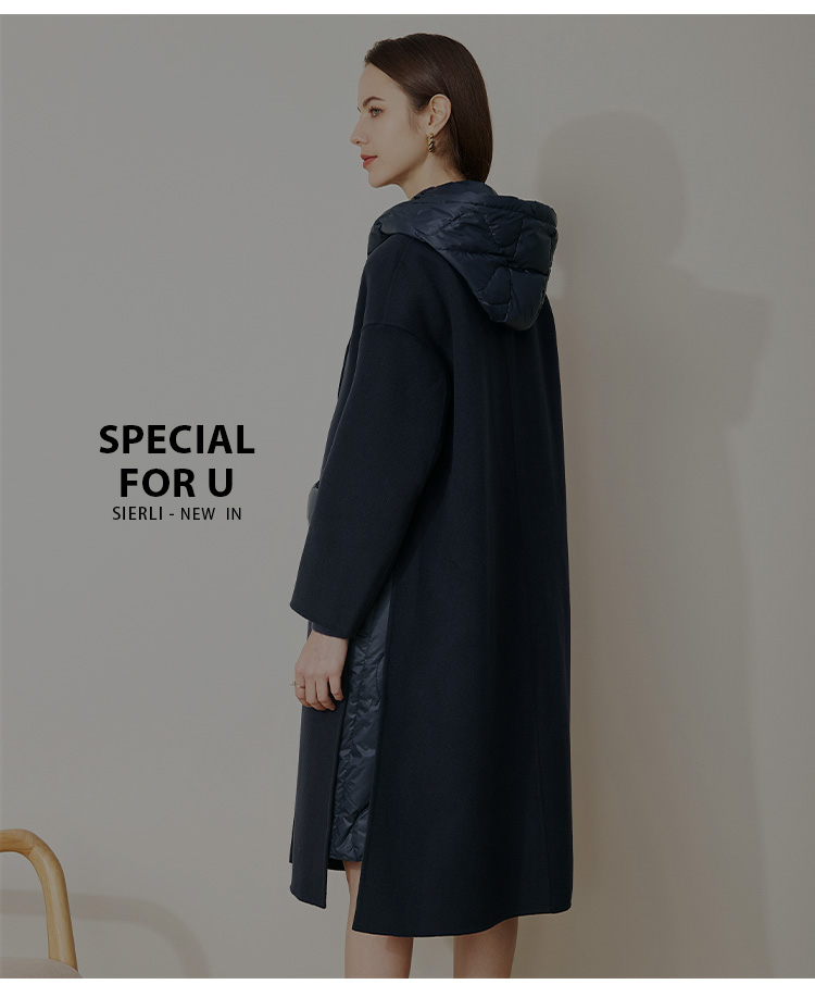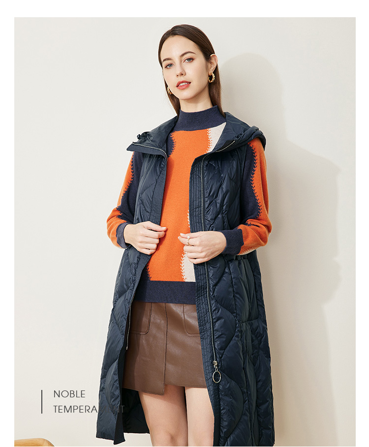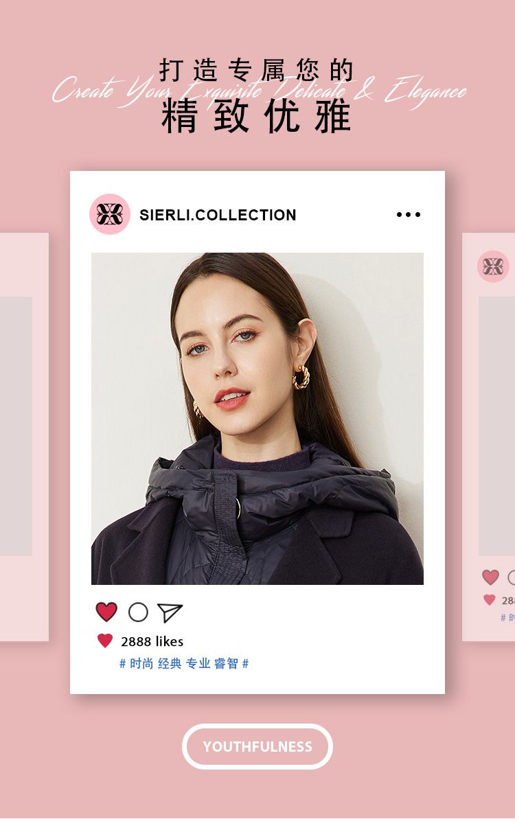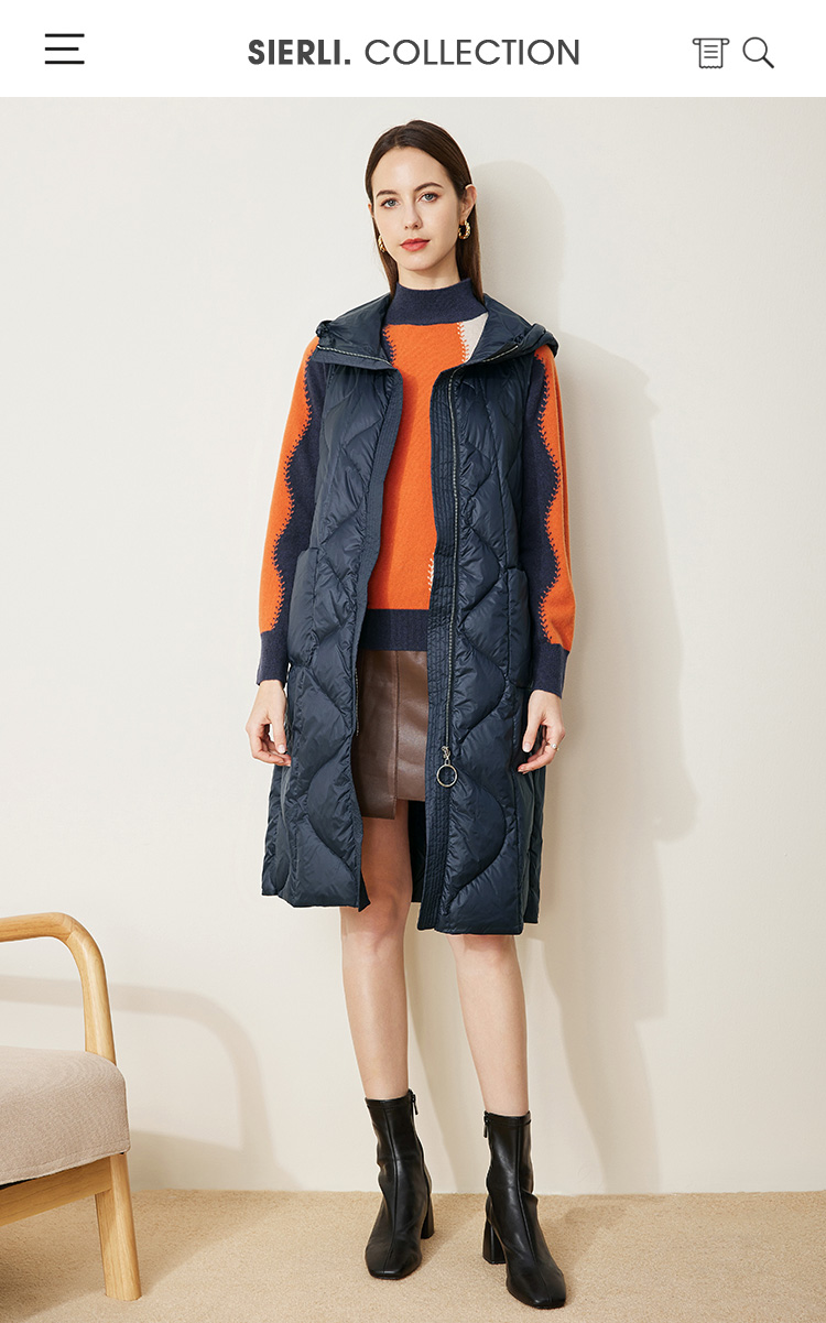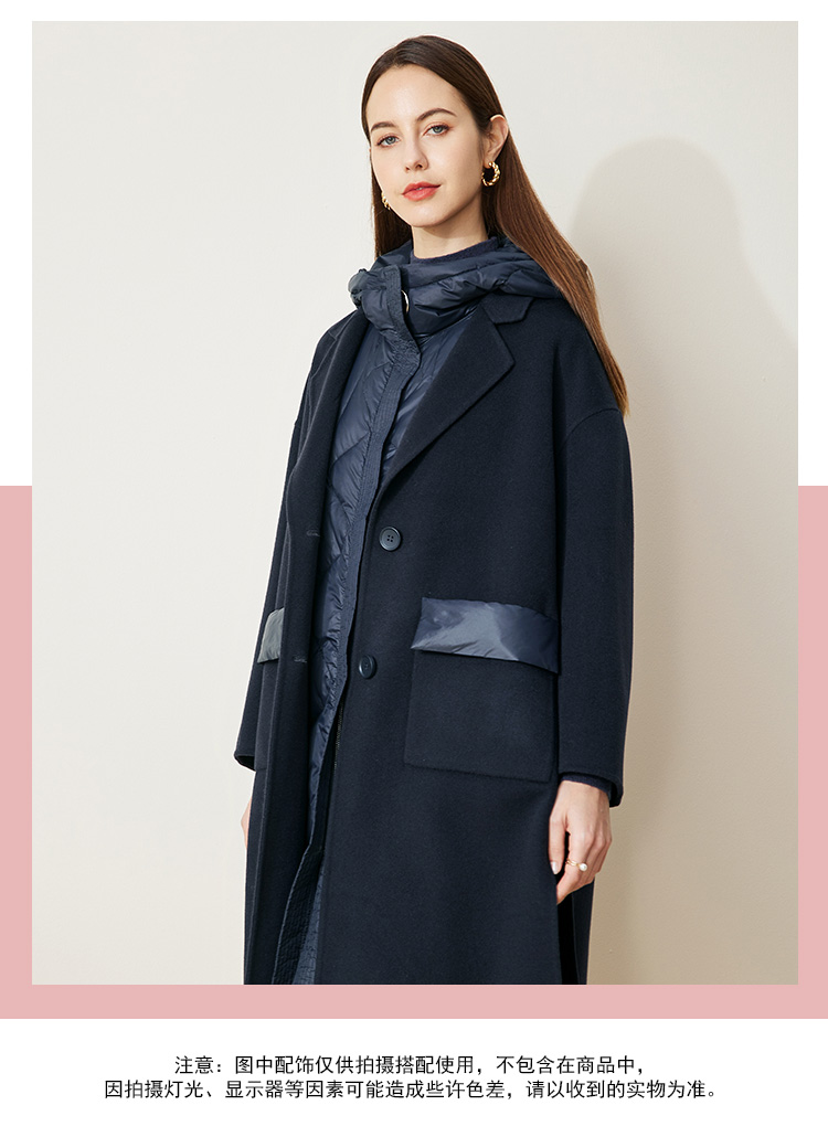 LH9T2斯尔丽2021新款秋冬瑟俪时尚羽绒拼接中长款两件套可拆卸大衣外套