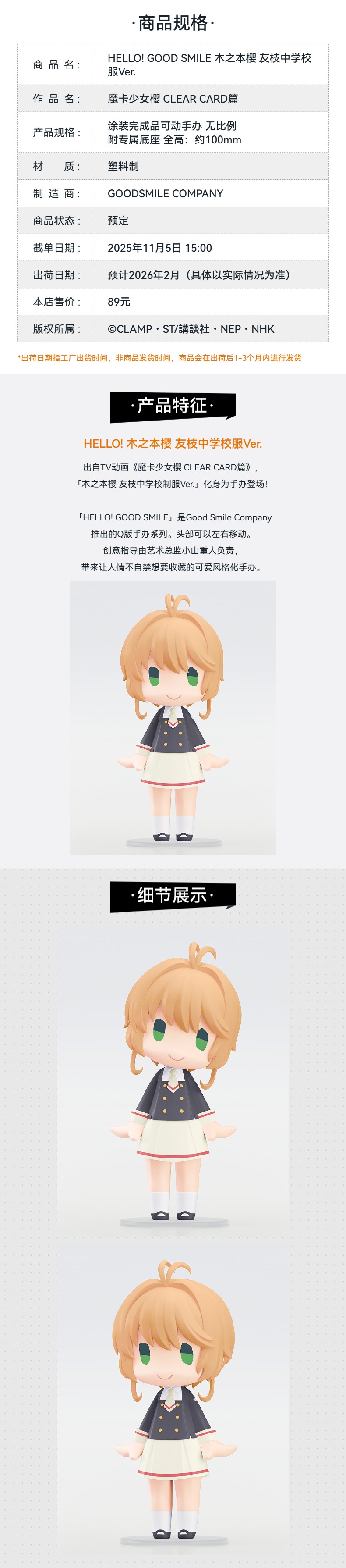 【GSC现货】HELLO! GOOD SMILE 木之本樱 友枝中学校服Ver.
