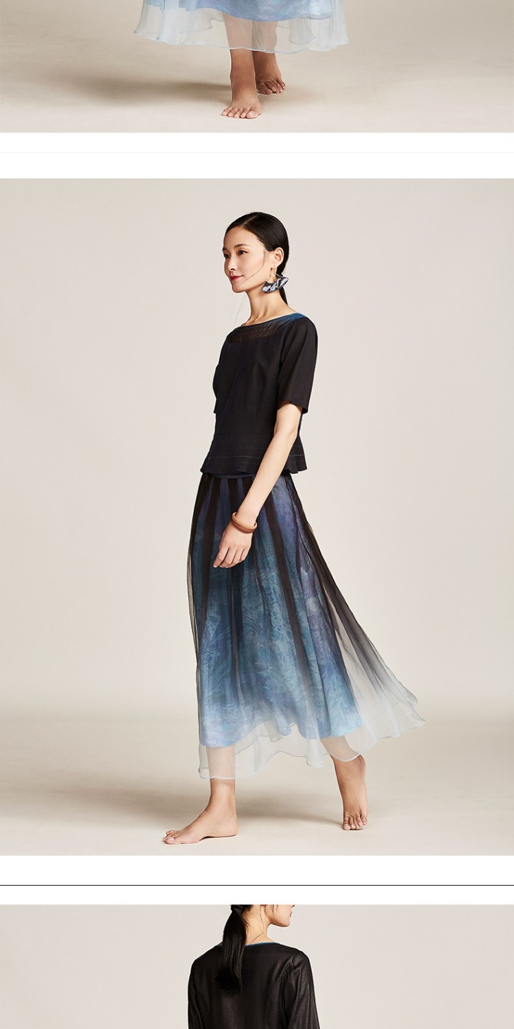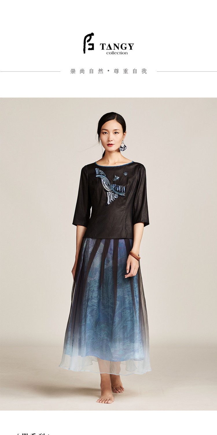 TANGY Collection/天意精品夏季新品異系列柯纱吊染冠乐绉印花半裙
