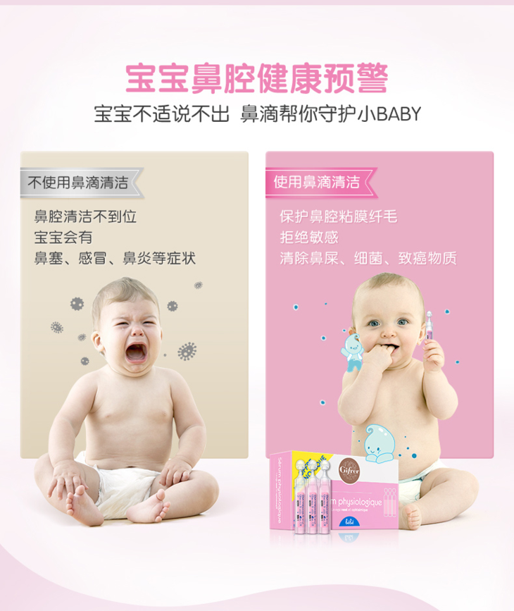 肌肤蕾(gifrer) 法国深海盐水婴儿洗鼻器 婴幼儿童洗鼻喷雾鼻腔清理滴鼻剂 吸鼻器专用盐水 5ml*40支