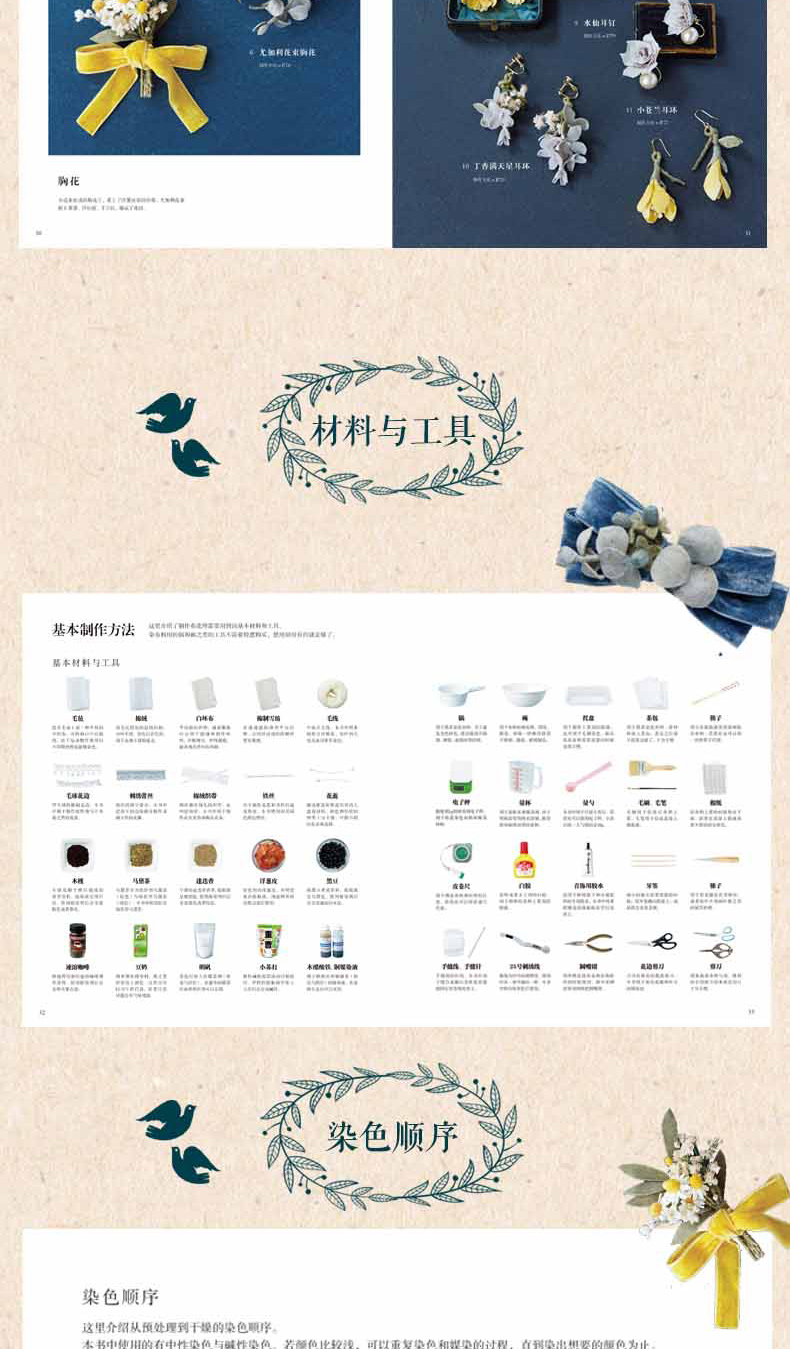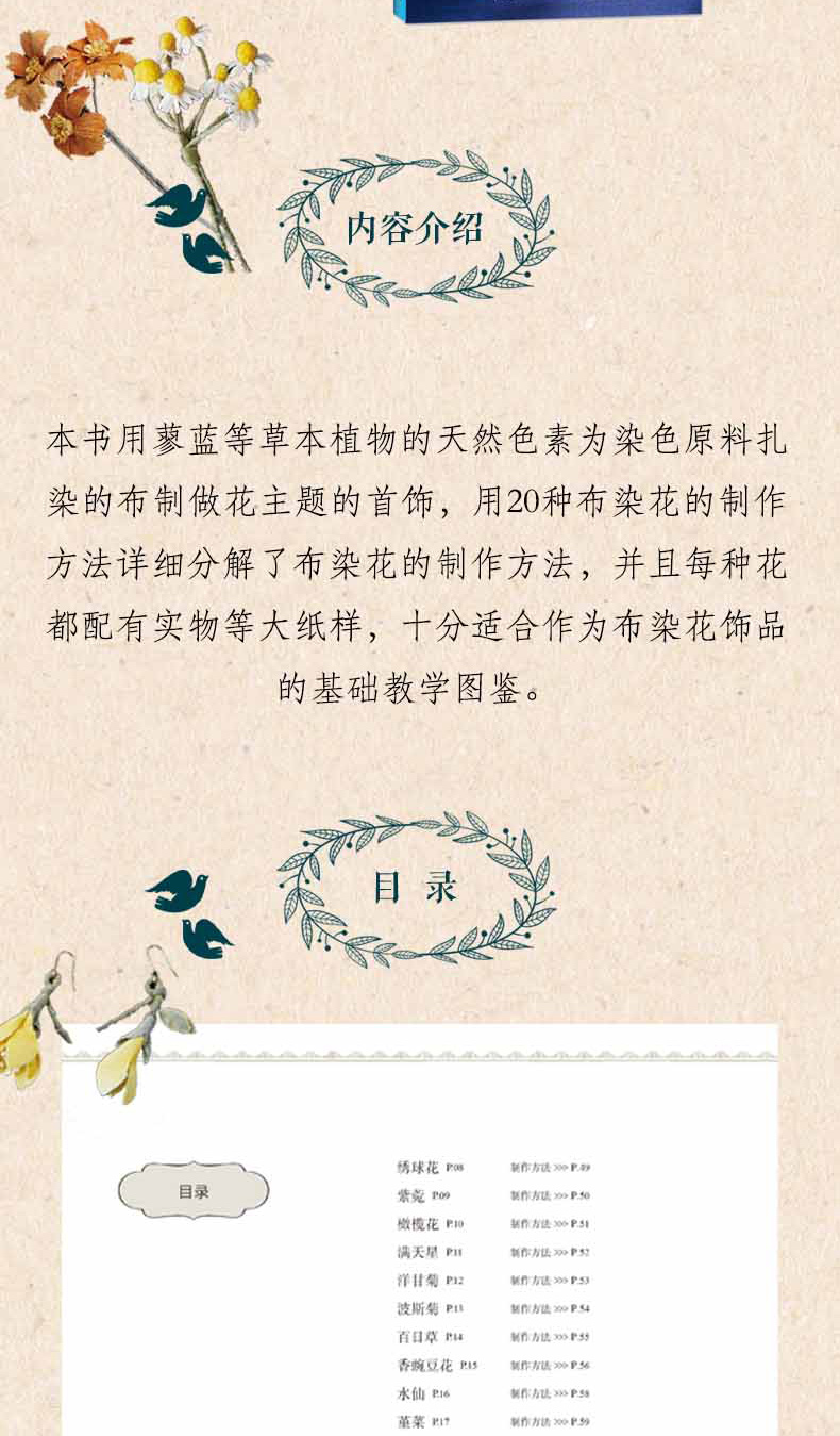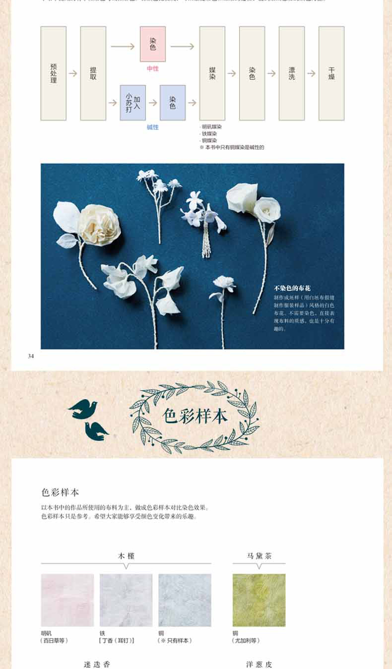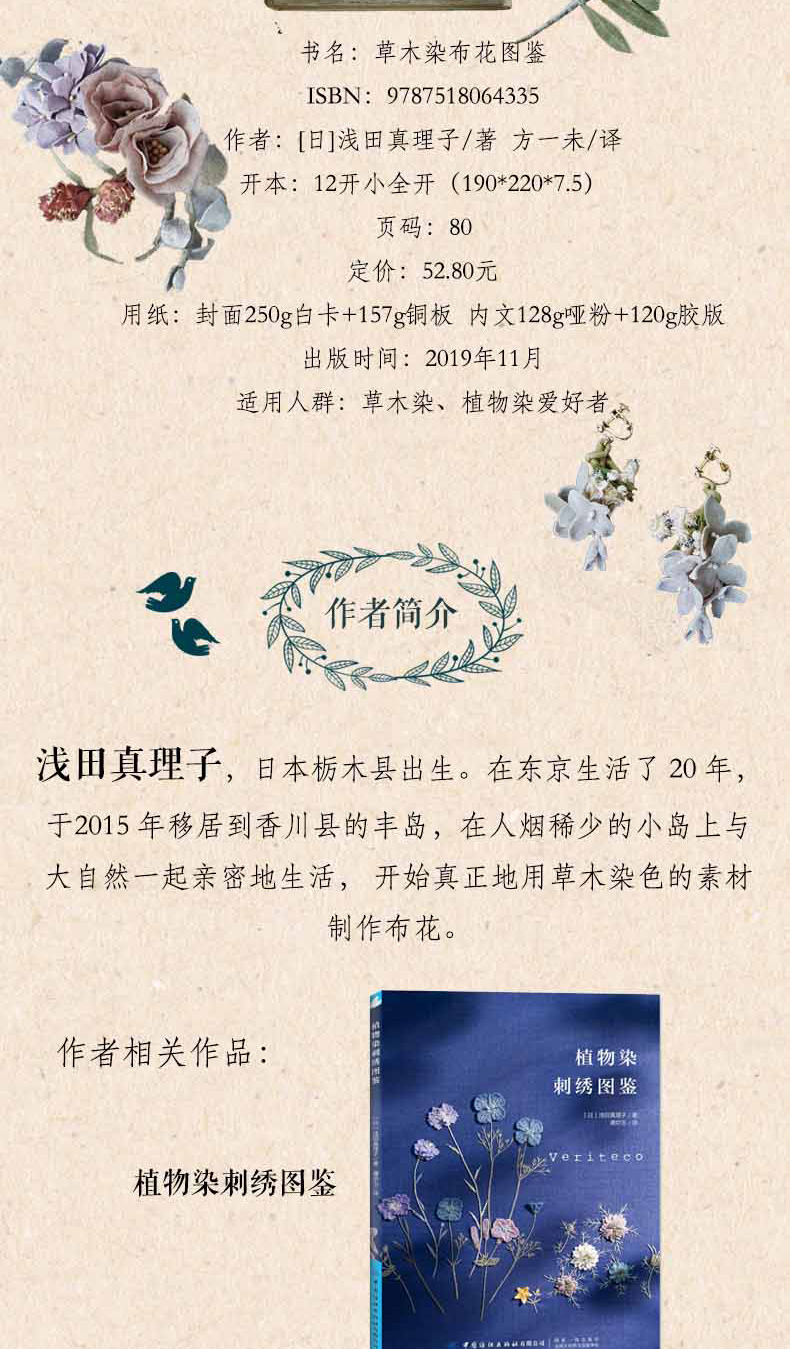 全2本 草木染布花图鉴+植物染刺绣图鉴 花草树木刺绣布花手工DIY设计制作教程 花草花语讲解钩针编织花样图案大全 丝带绣串珠步骤
