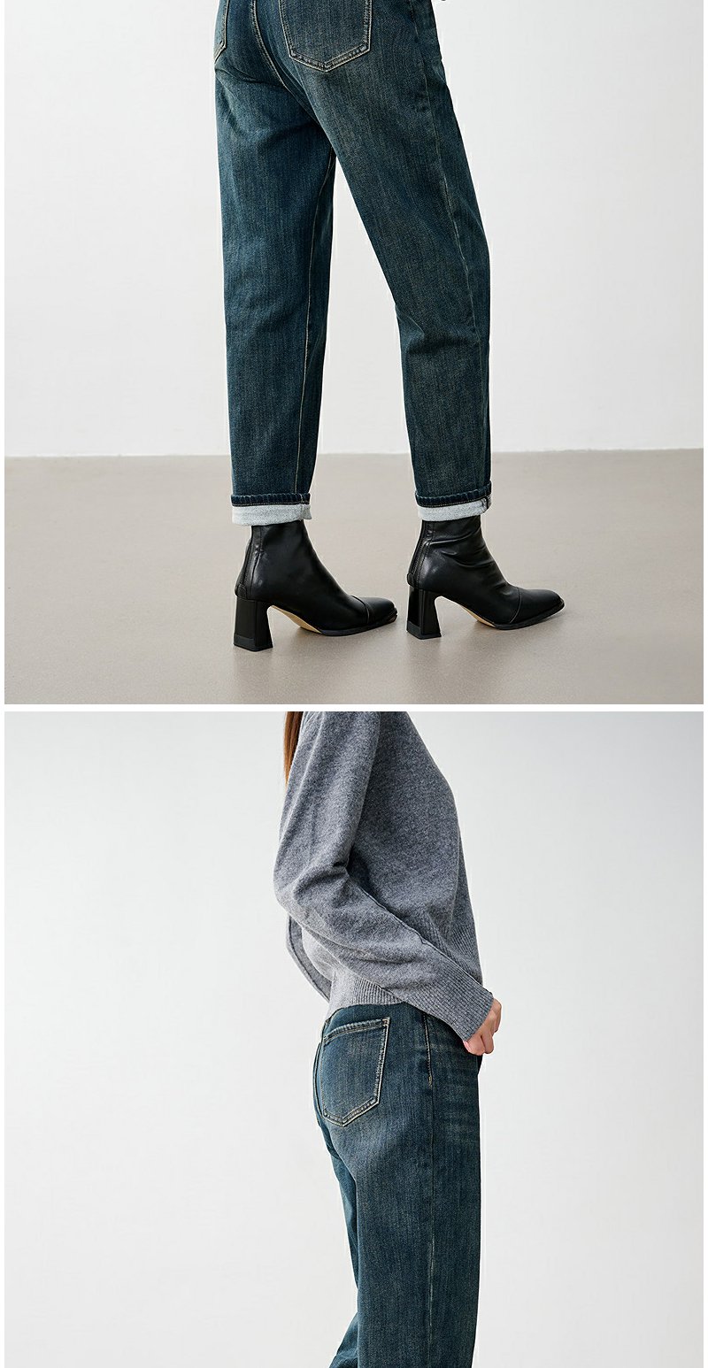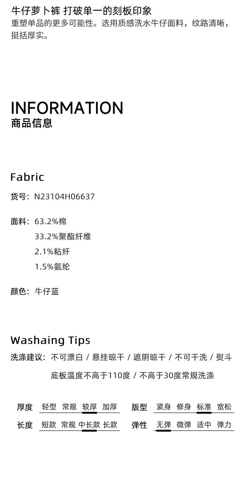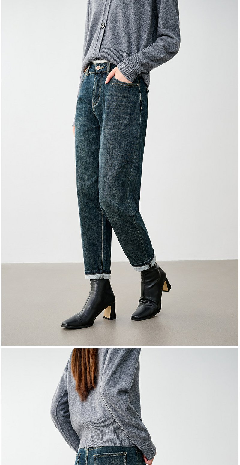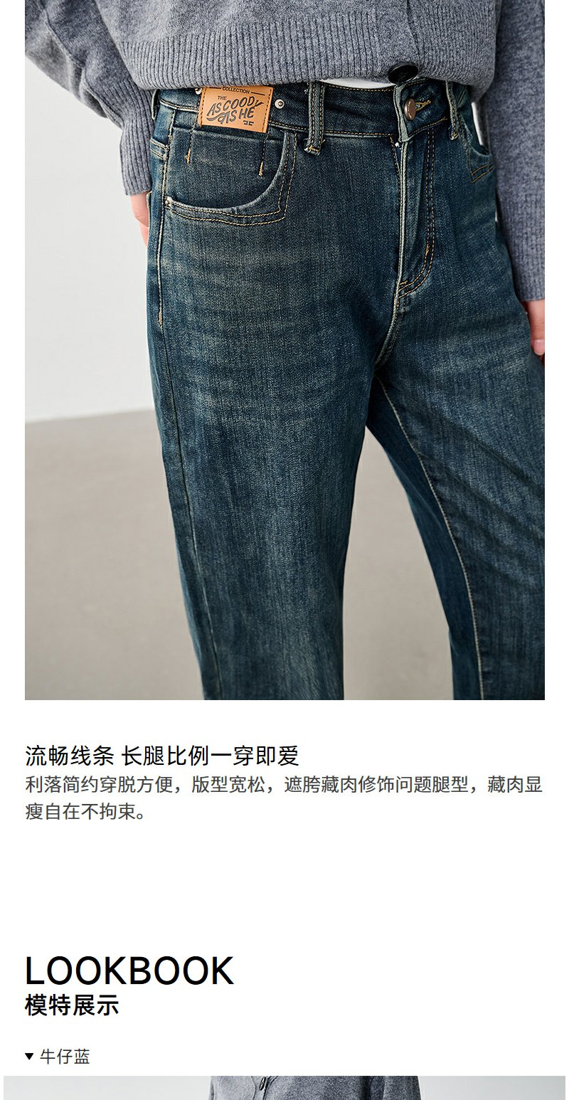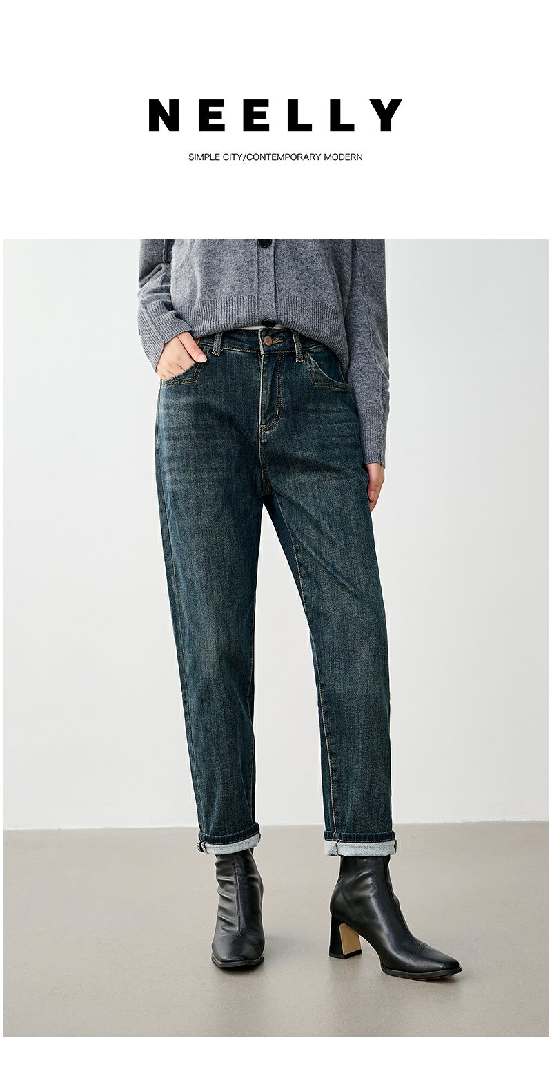 NEELLY纳俪商场同款冬季新款微弹锥型牛仔裤女高腰经典百搭长裤N23104H06637