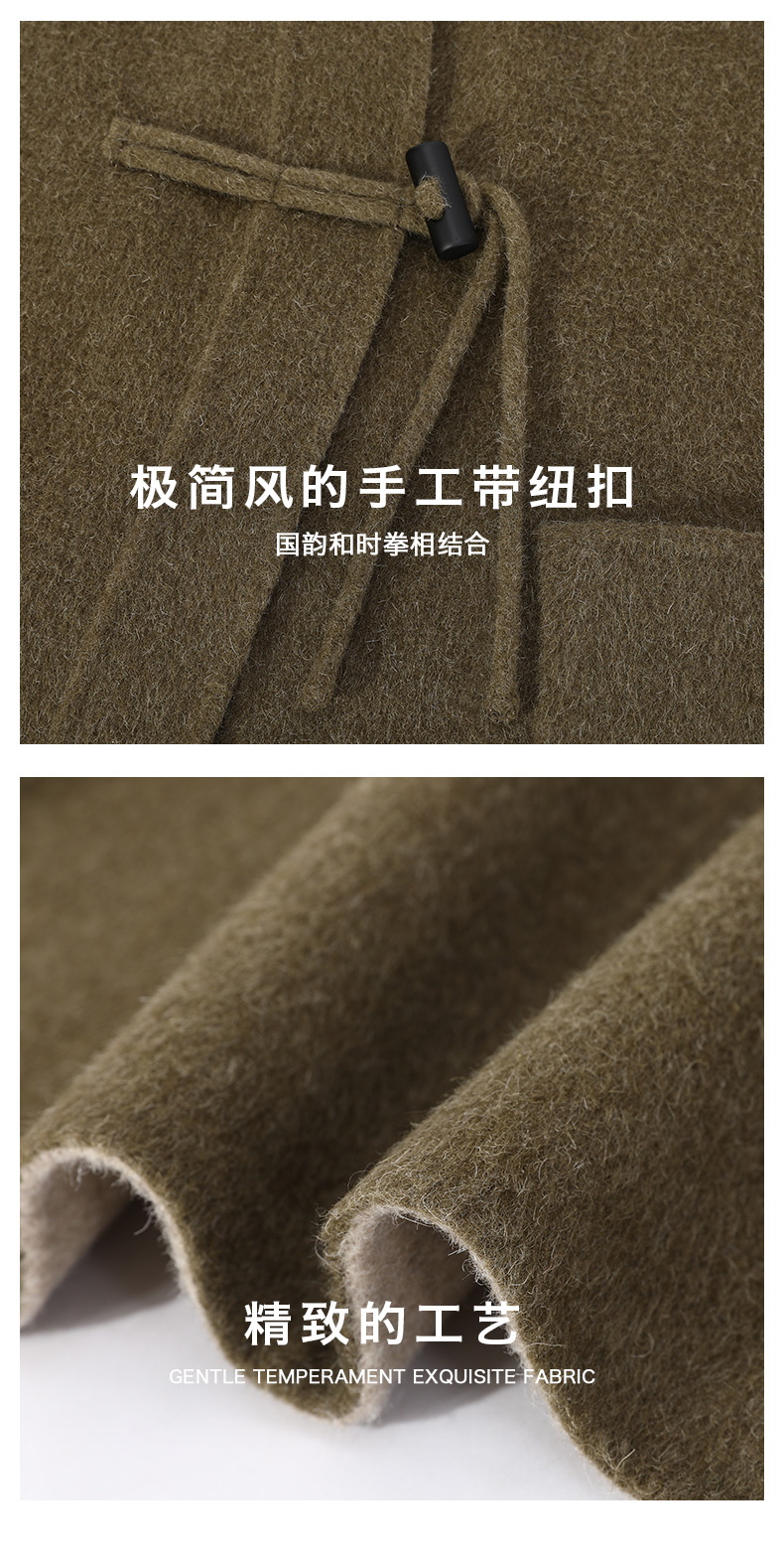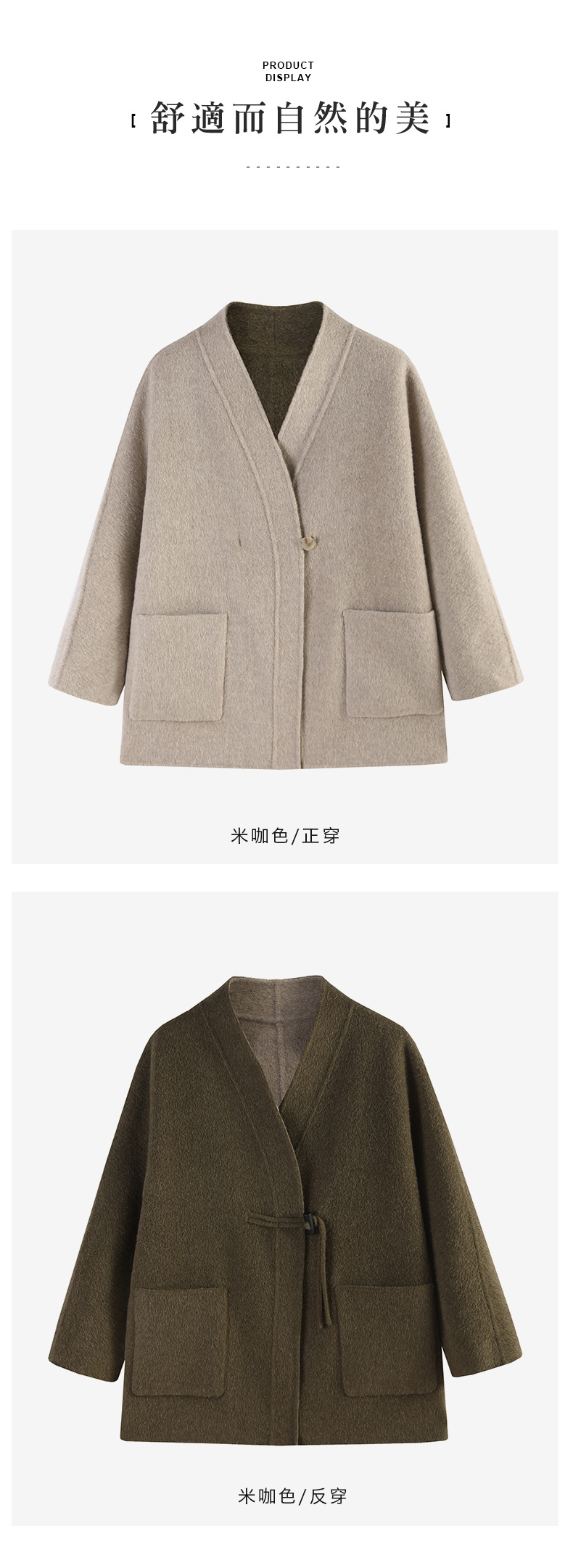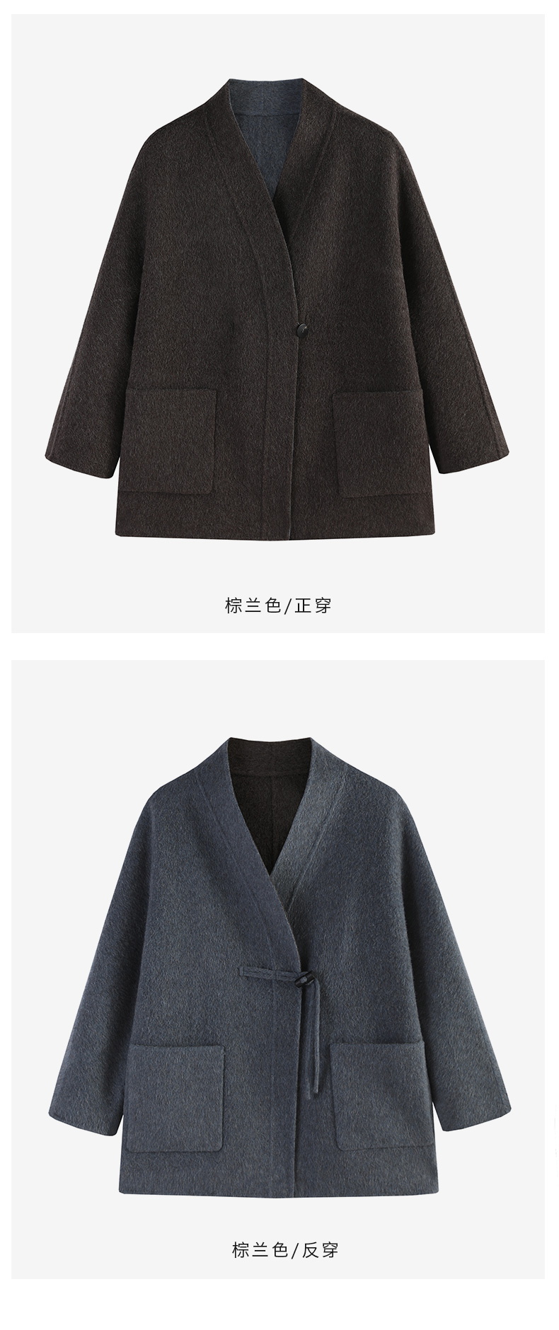米加蜜 羊驼毛双面双色短大衣新中式外套
