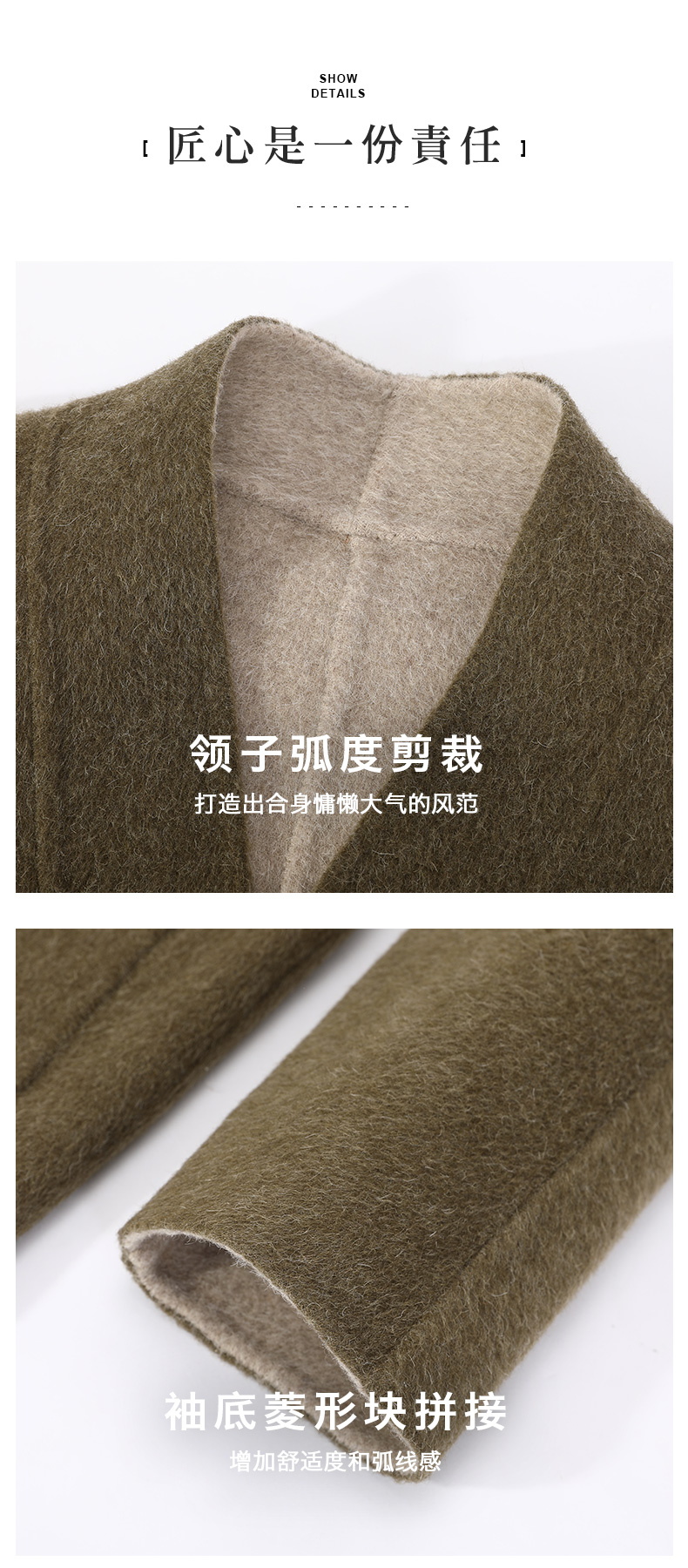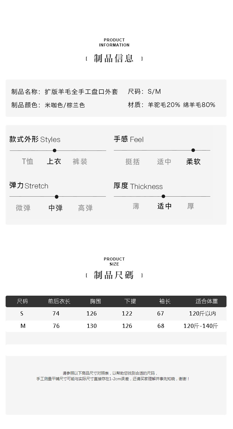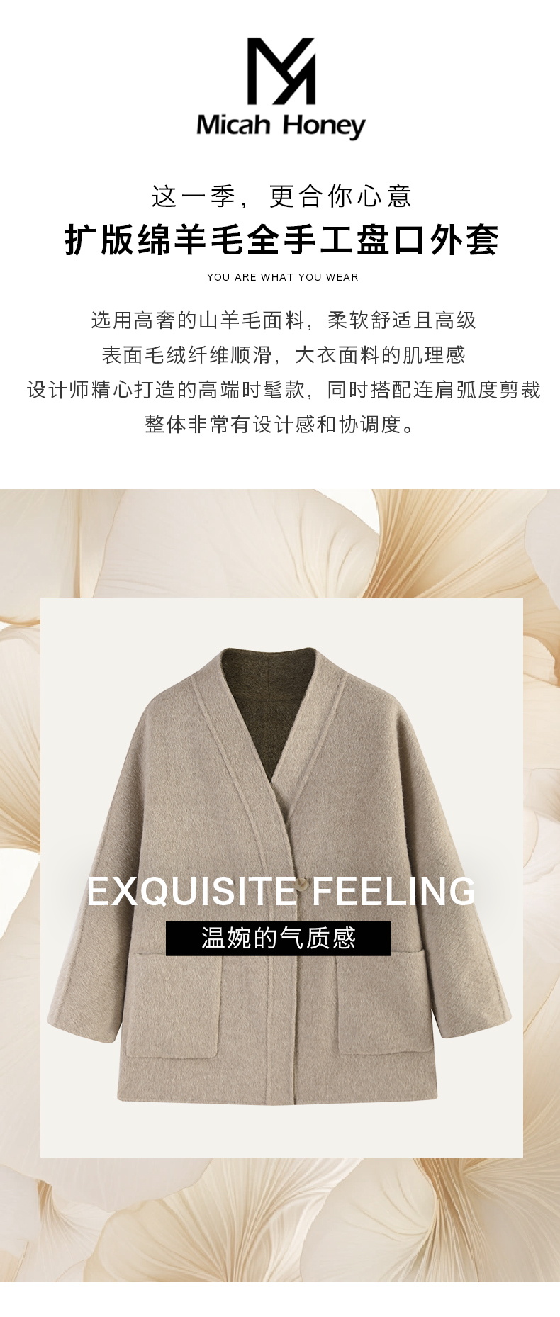 米加蜜 羊驼毛双面双色短大衣新中式外套