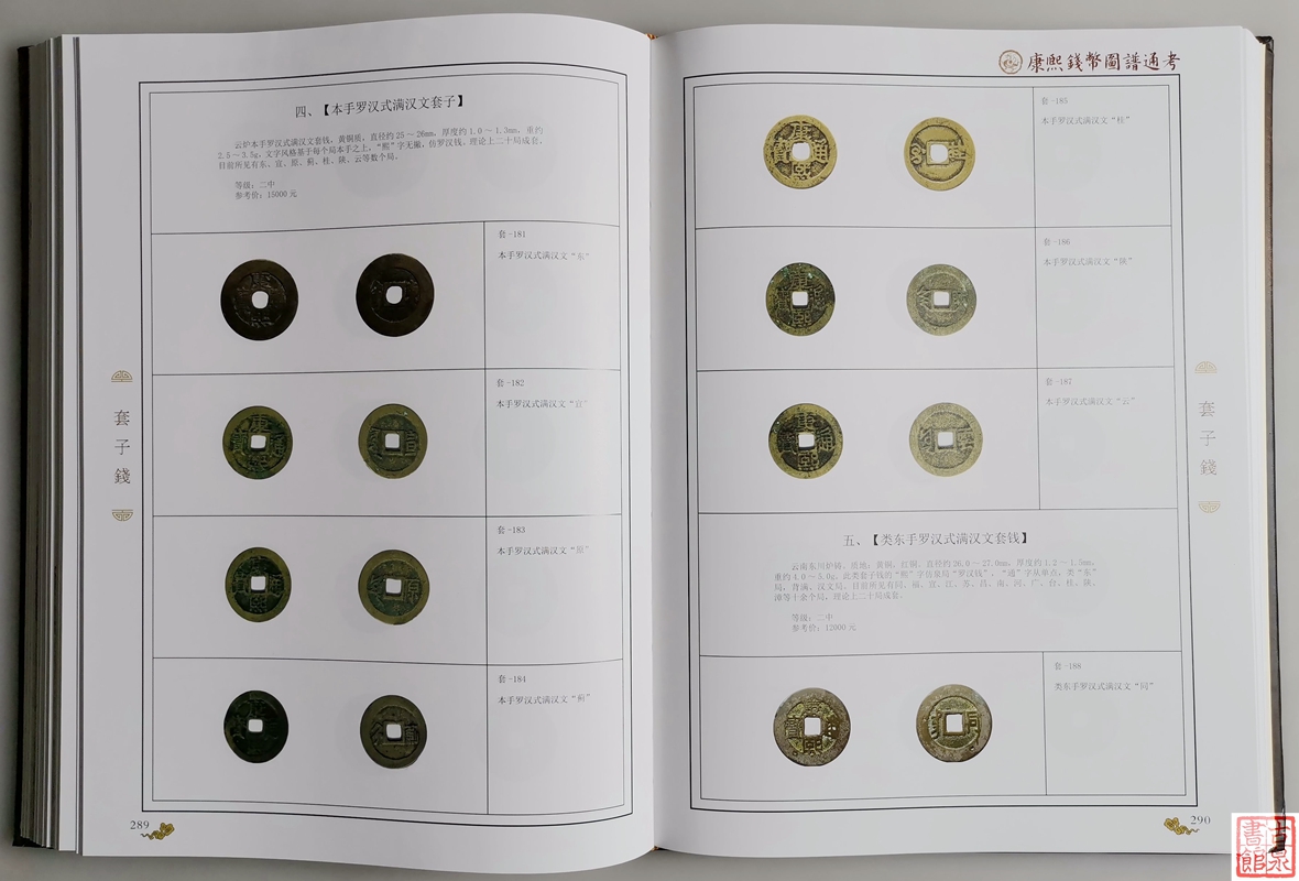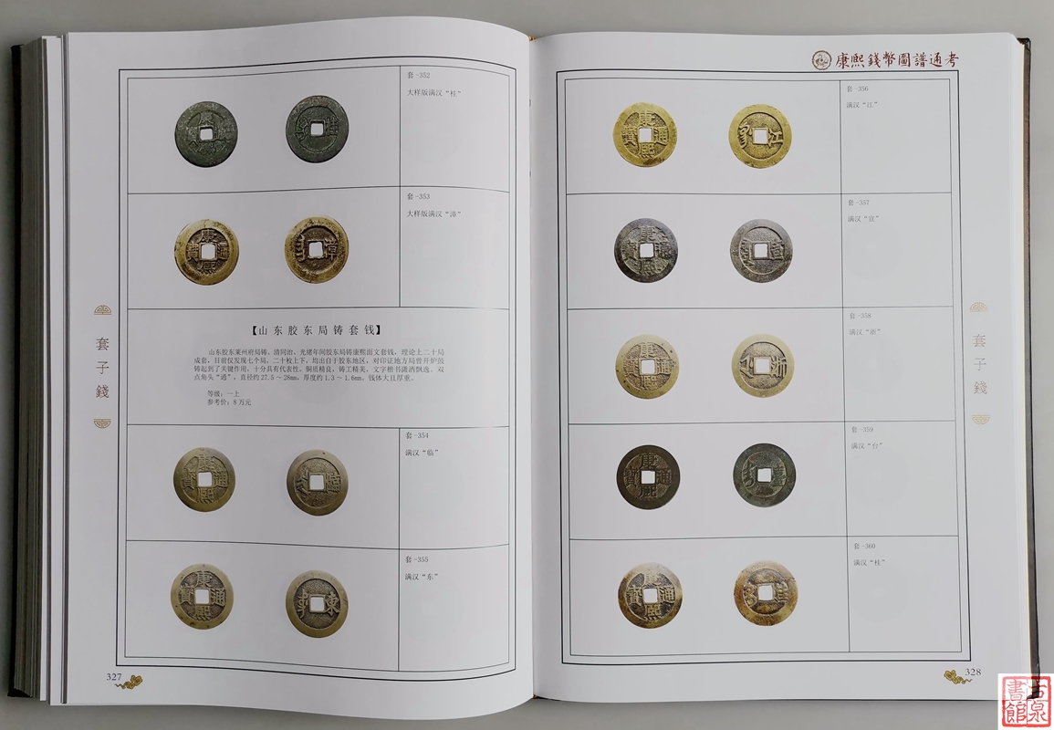 修订版《康熙钱币图谱通考》集专业性、市场化于一体,内容详实,条理清晰,图文并茂,为工具书籍与鉴赏图集相结合,全书共计552页,全彩色制。