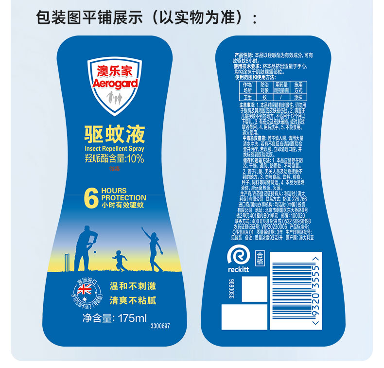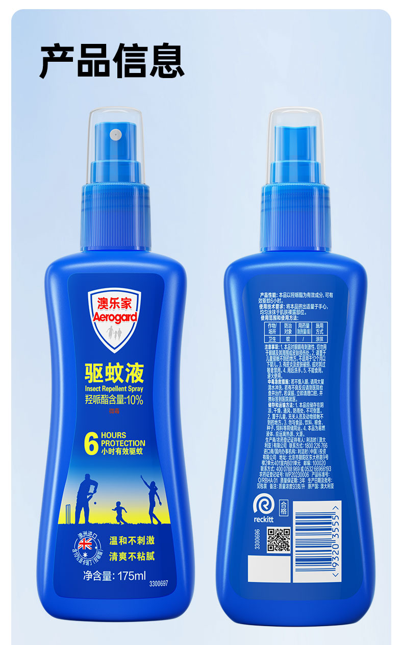 【驱蚊液175ml】Aerogard澳乐家驱蚊液175ml 驱蚊6小时 驱蚊水儿童防蚊户外神器 非花露水