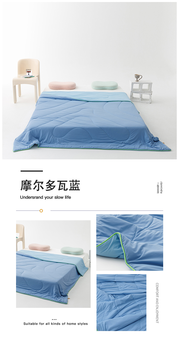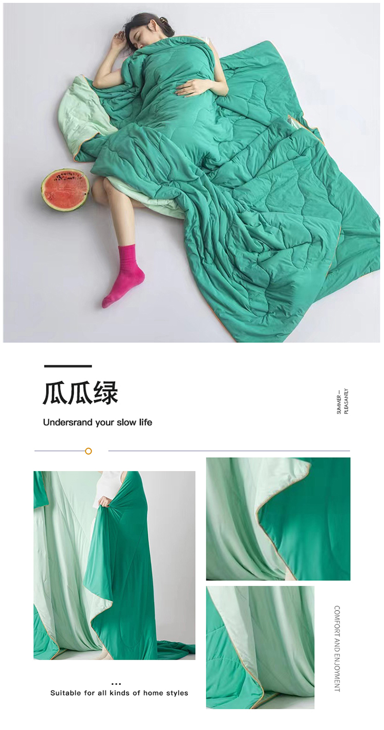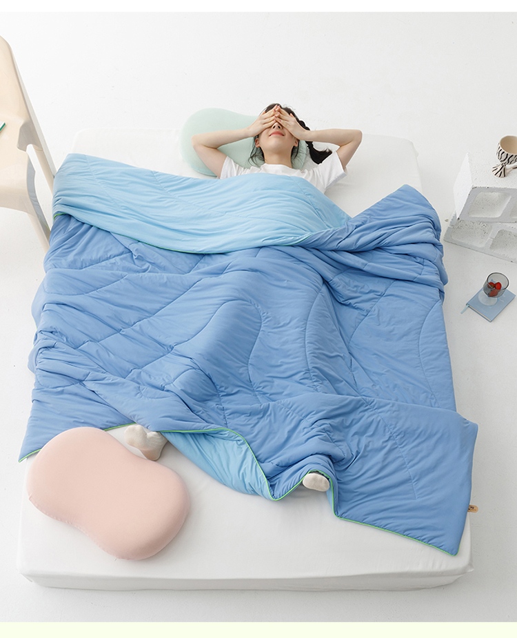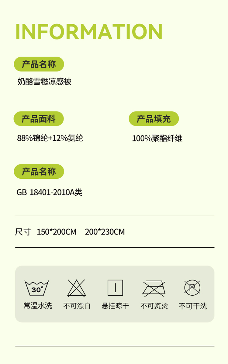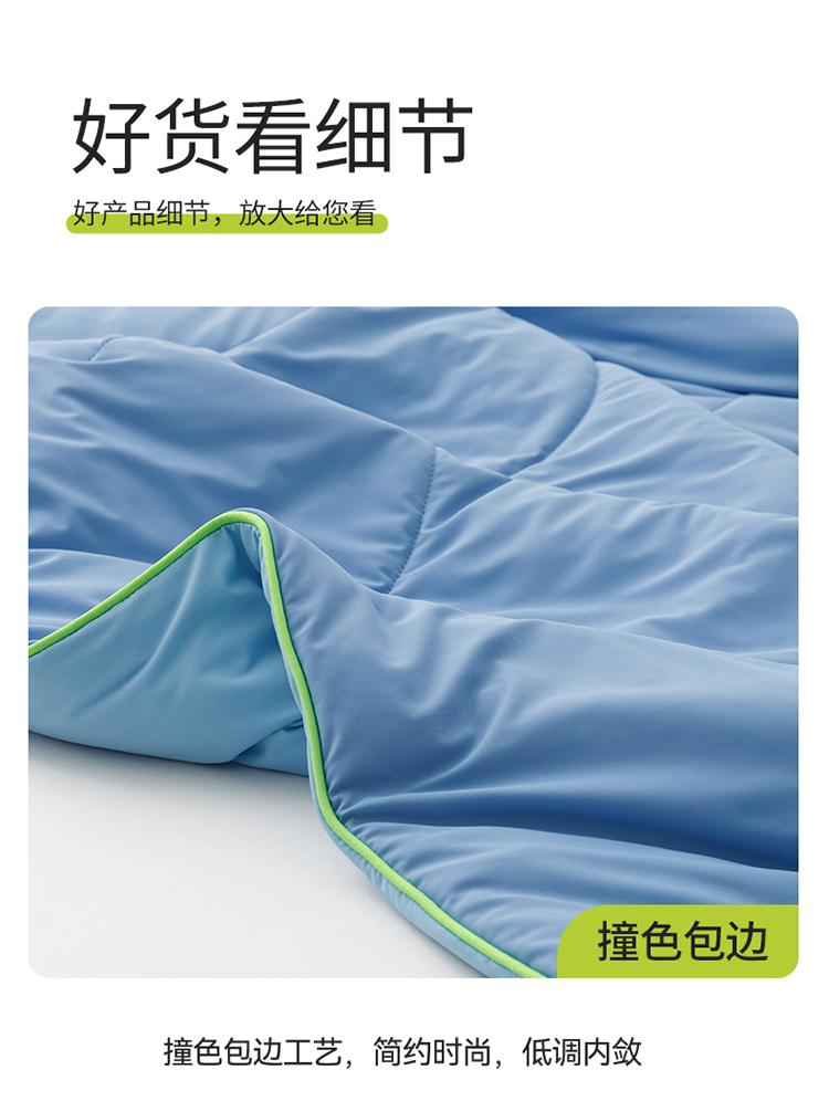 顶柔奶酪雪糍凉感被,以锦纶作为凉感纤维,通过纤维的配比,提供更加透气的温和清凉感