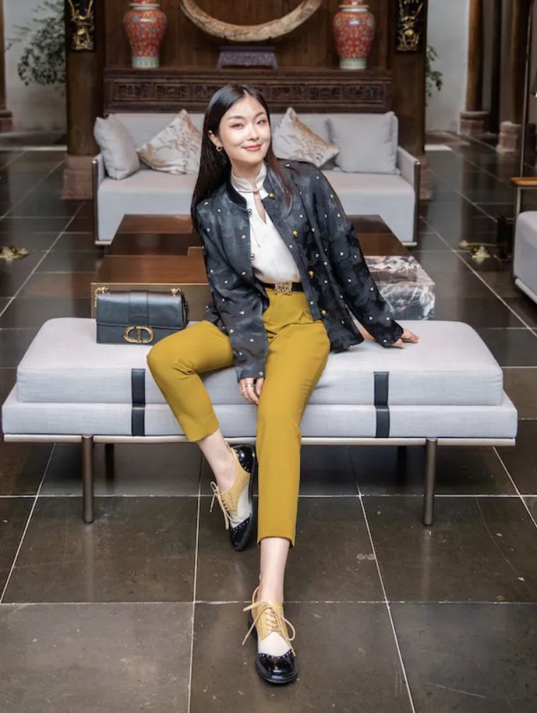 调皮的卡其黄,搭配9分裤子,显得腿特别的修长,真的美炸了天呢❤️