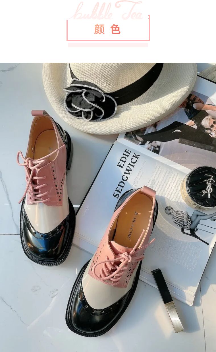 【断码特惠不退换】复古撞色英伦小皮鞋|头层开边珠牛皮 不易褶皱 温润G级 耐穿且不爆皮 三种撞色拼接 抽象艺术感又惊艳 羊皮内里软绵舒-适 2cm鞋跟 就像运动鞋一样好走