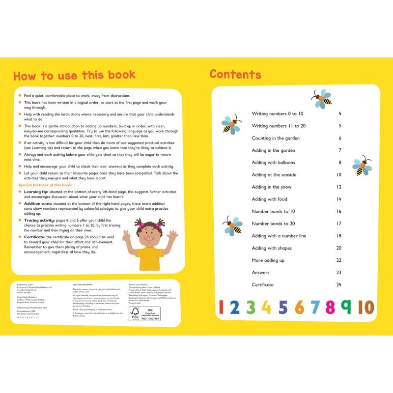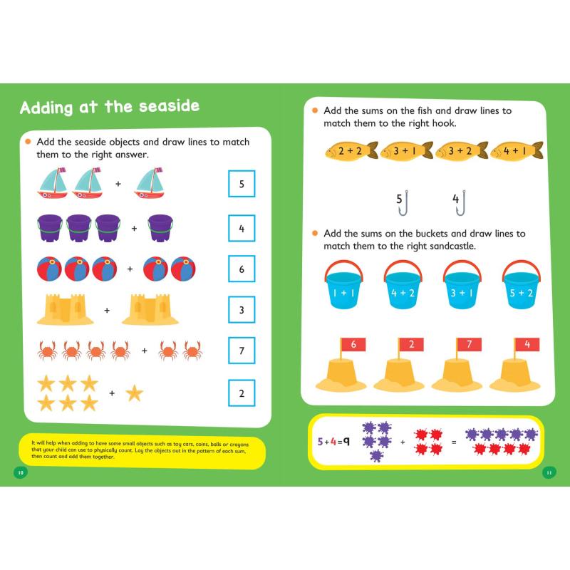 Level: EYFSSubject: MathsAn engaging Adding Up activity book to really help boost your child’s progress at every stage of their learning! Fully in line with the Early Years Foundation Stage, this Maths book provides reassurance whilst supporting your child’s learning at home.Combining useful Maths practice with engaging, colourful illustrations, this Adding Up practice book helps to boost your child’s confidence and develop good learning habits for life. Each fun activity is designed to give your child a real sense of achievement.Included in this book:• questions that allow children to practise the important skills learned at school• colourful activities that make learning fun and motivate children to learn at home• helpful tips and answers so that you can support your child’s learning.