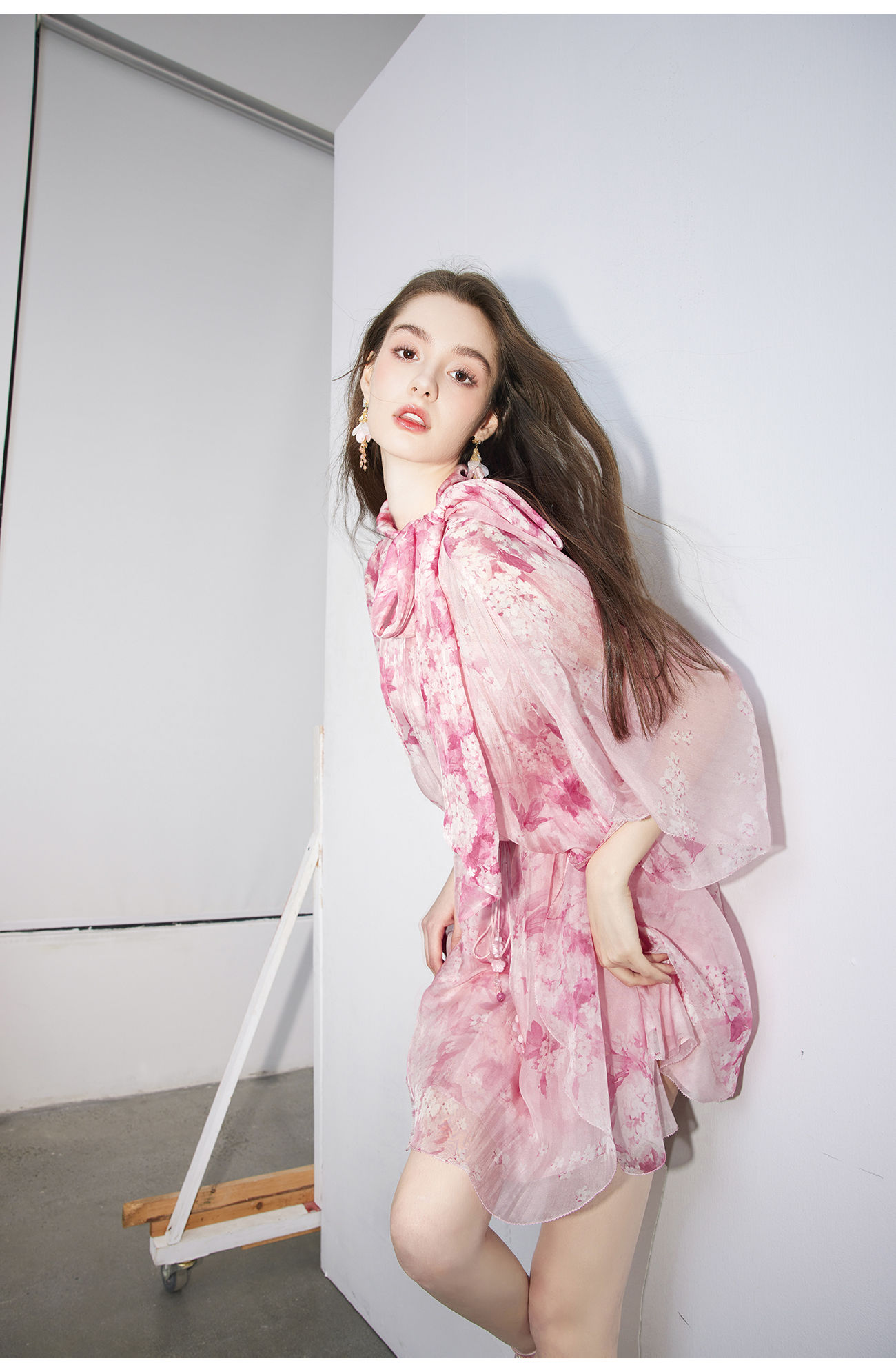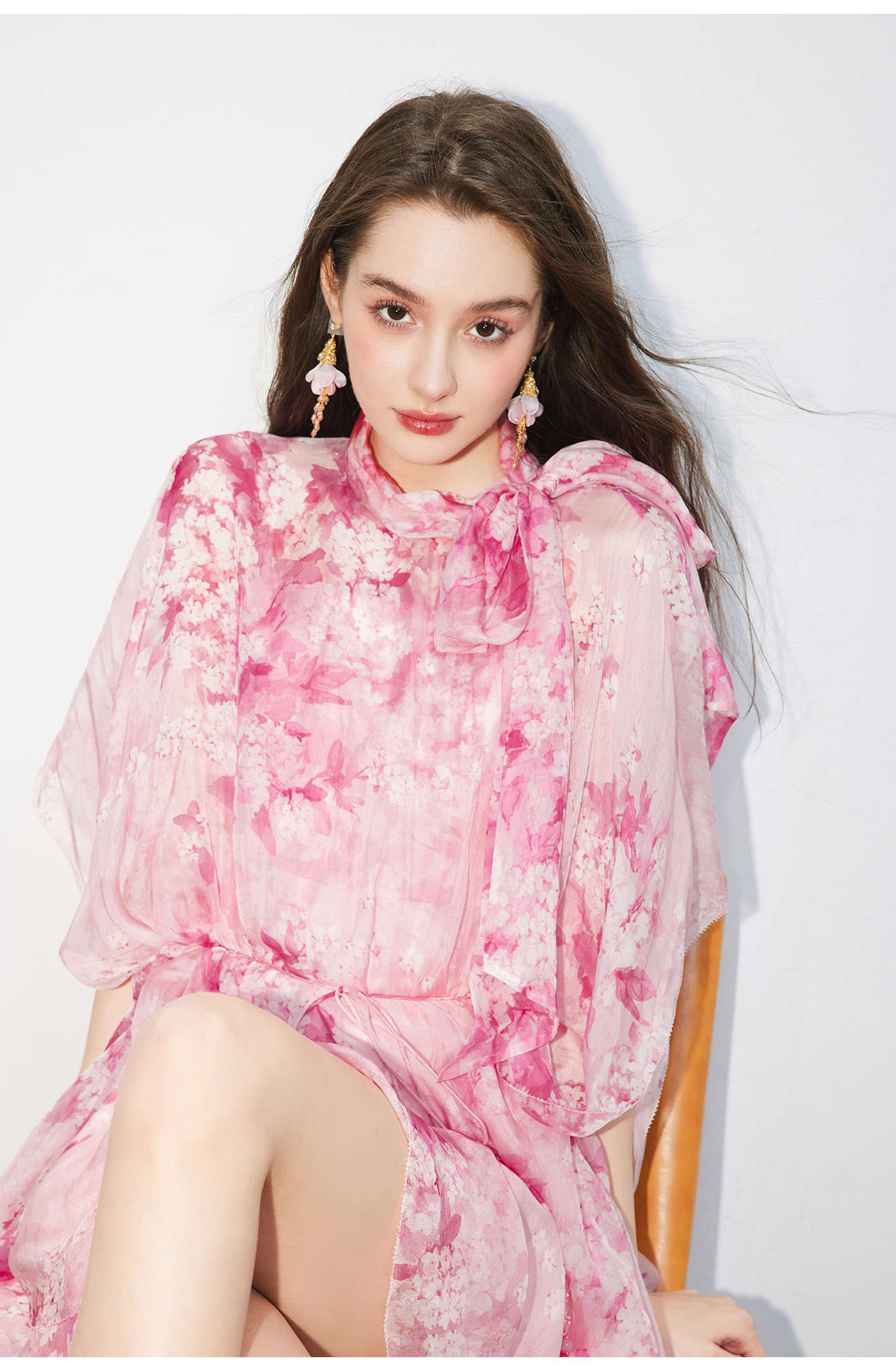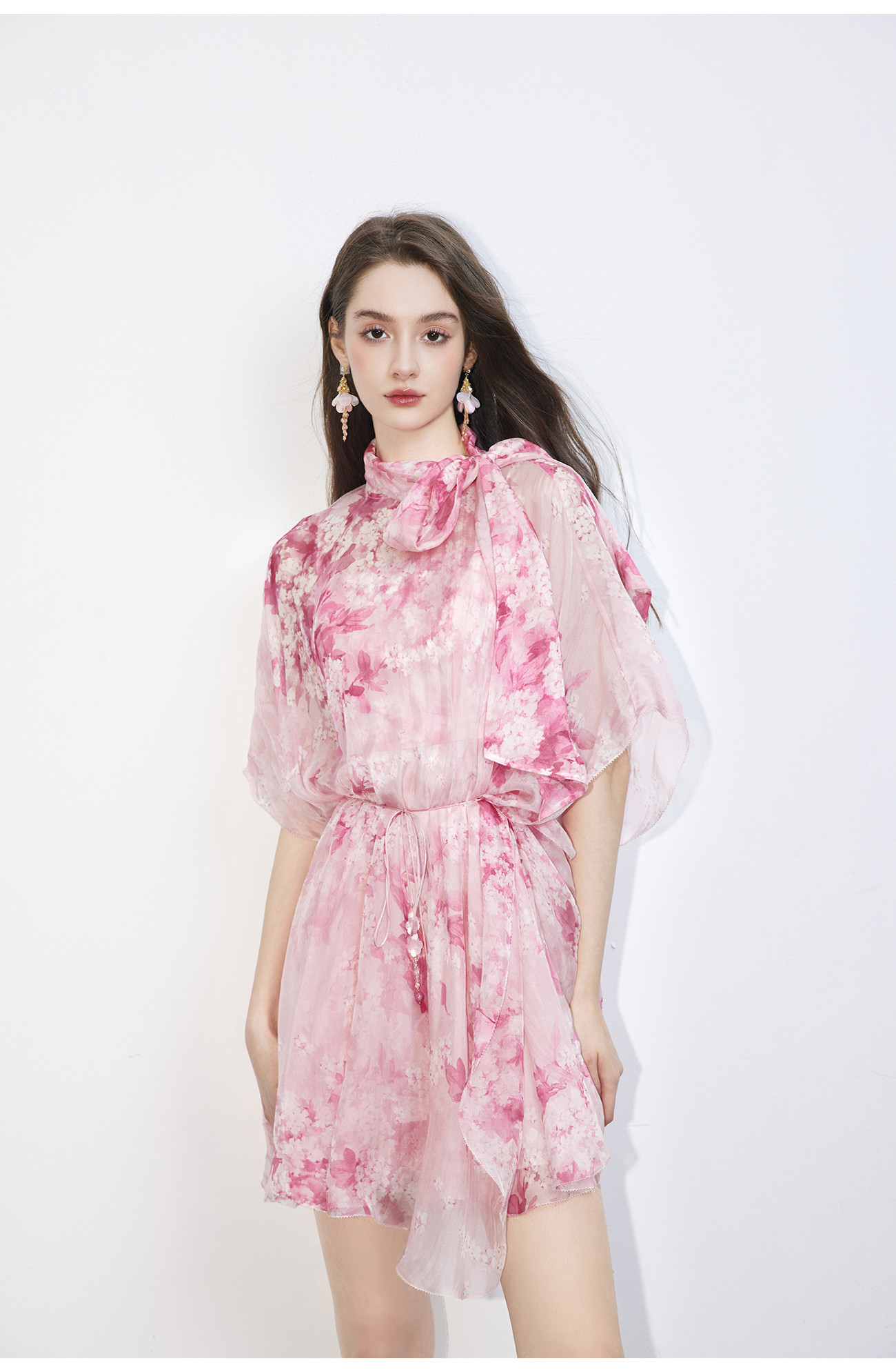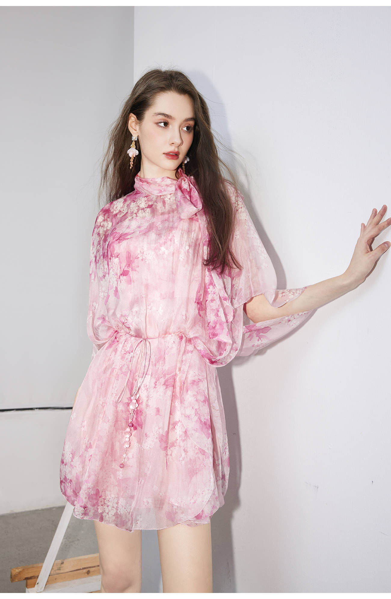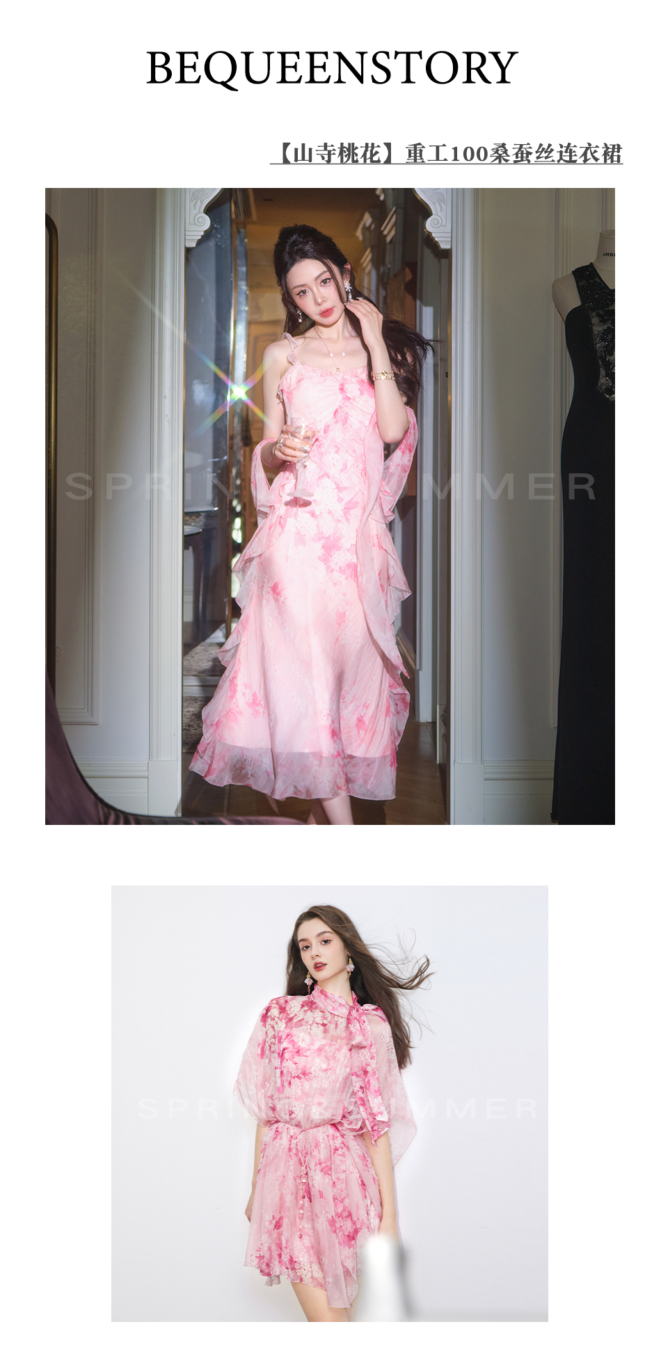 【孤品样衣,不退不换】 【山寺桃花】浪漫简约对丝重工款对丝工艺100桑蚕丝连衣裙