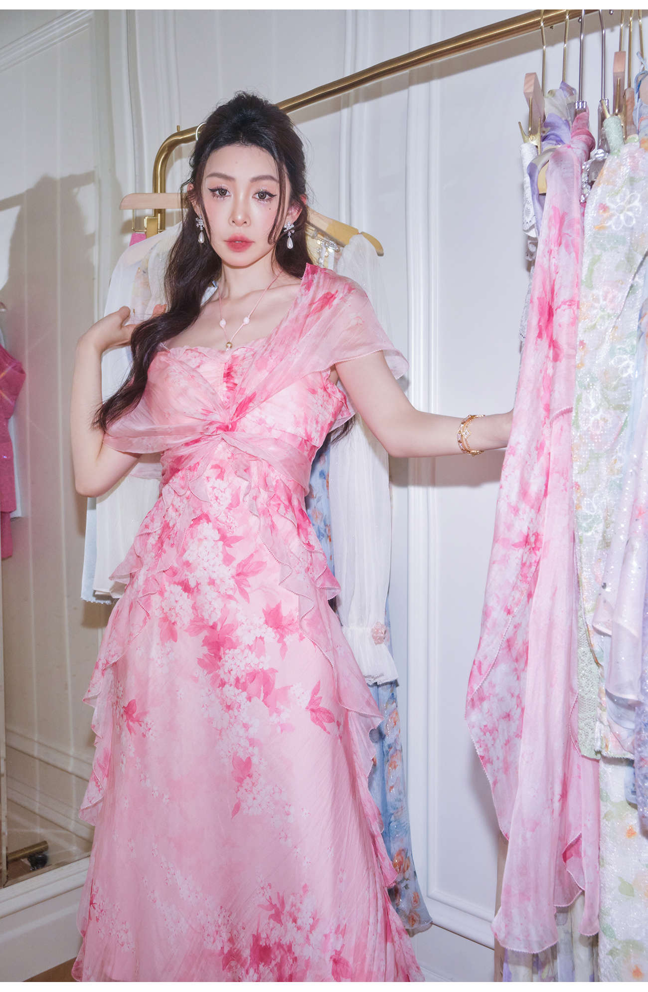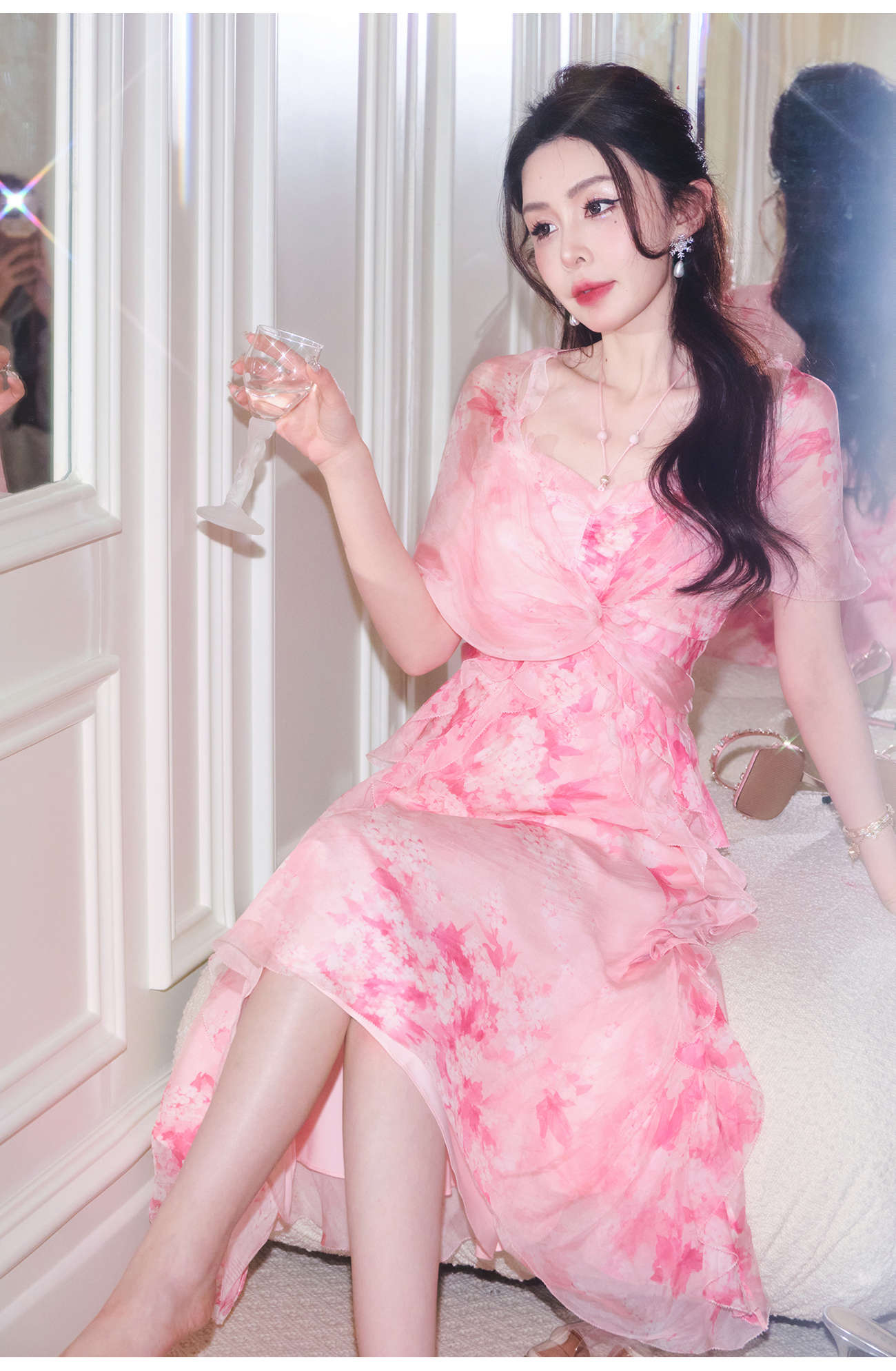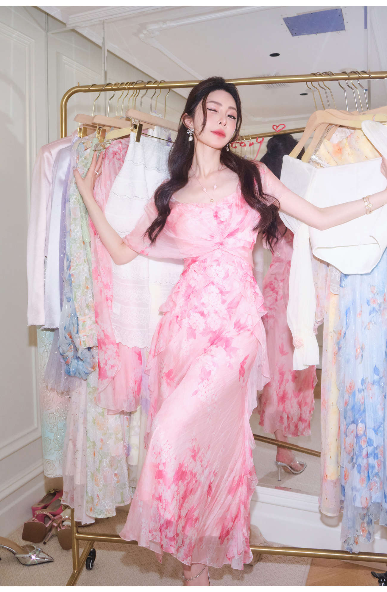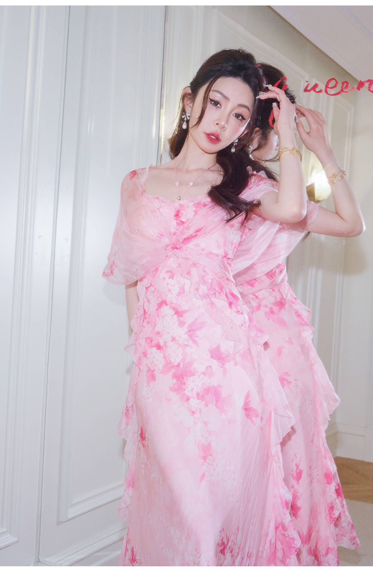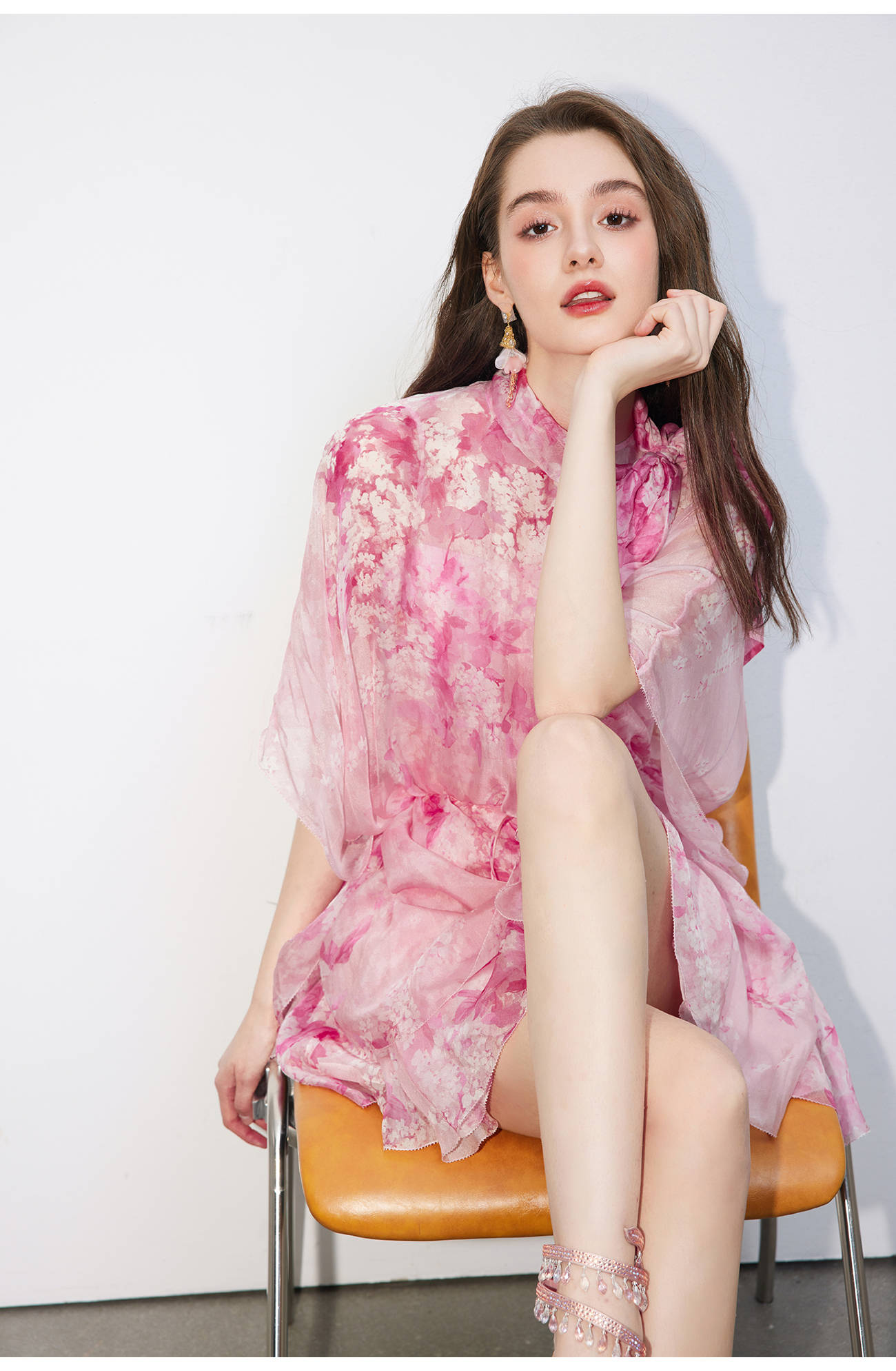 【孤品样衣,不退不换】 【山寺桃花】浪漫简约对丝重工款对丝工艺100桑蚕丝连衣裙