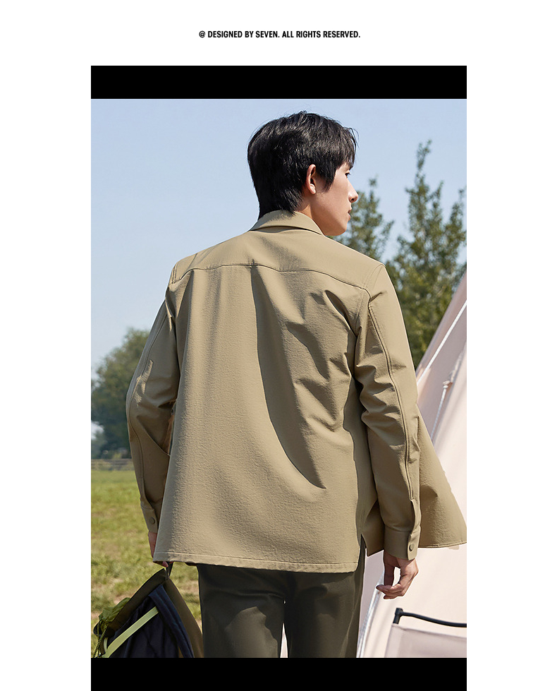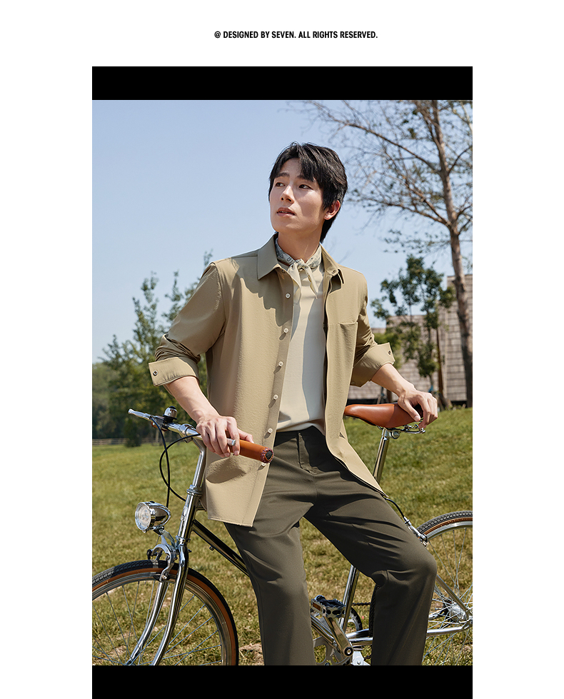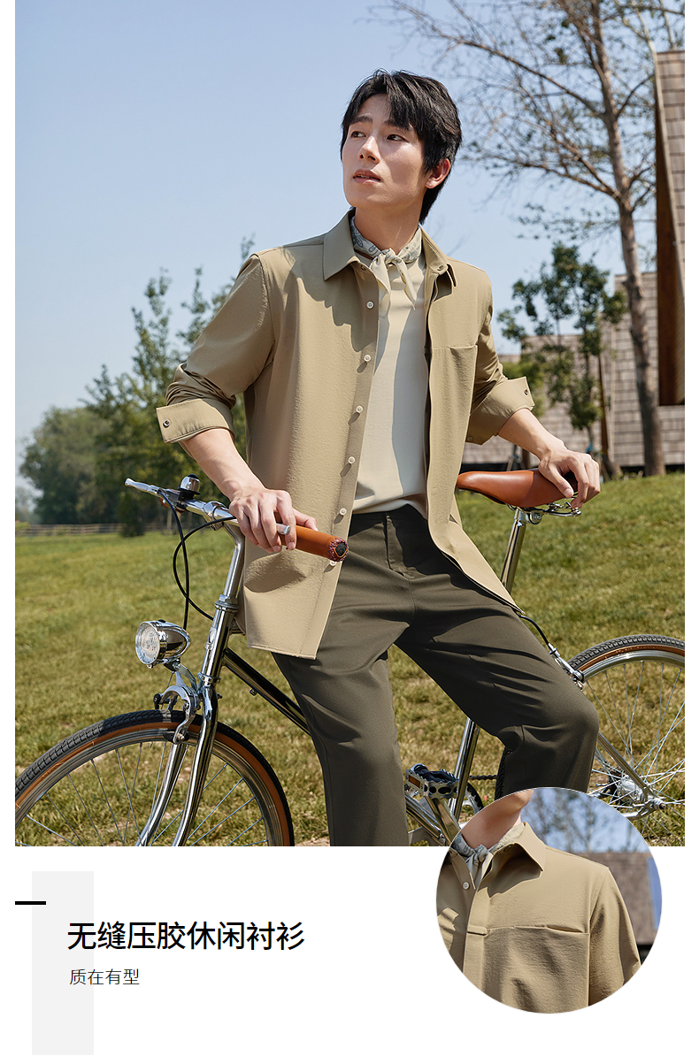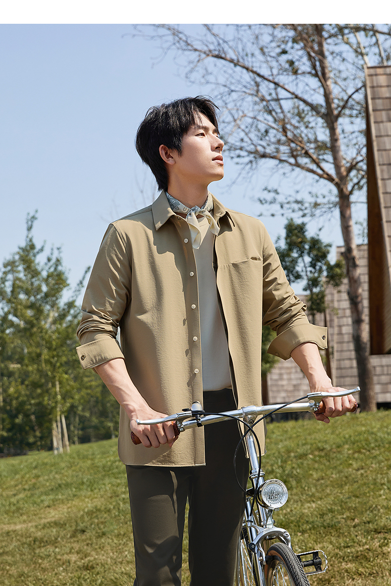 【无缝】柒牌男装长袖衬衫男2024秋冬新款时尚休闲翻领假口袋衬衣 127A70090