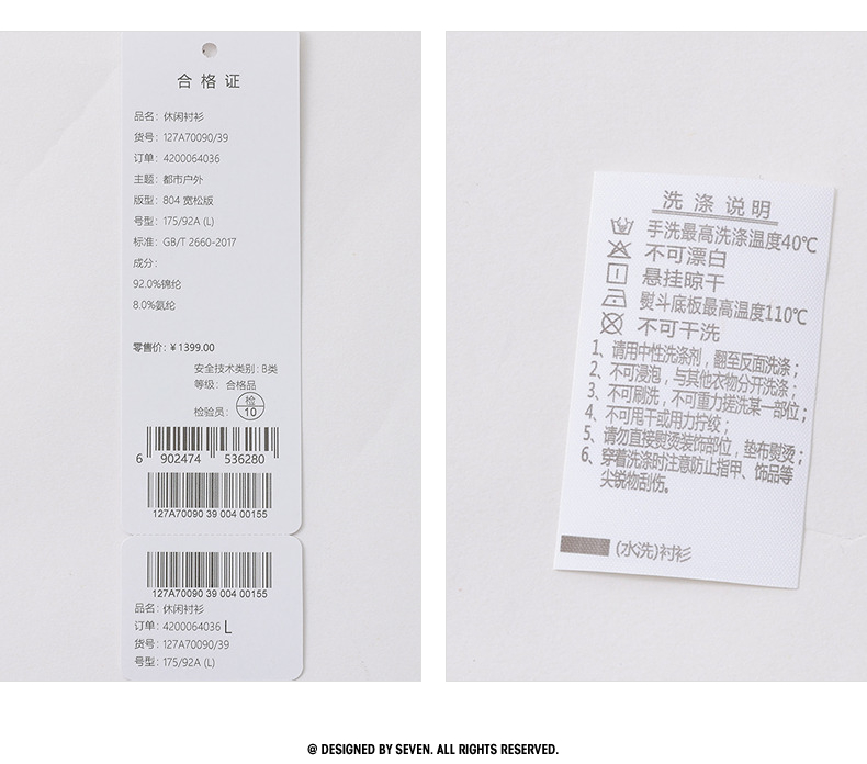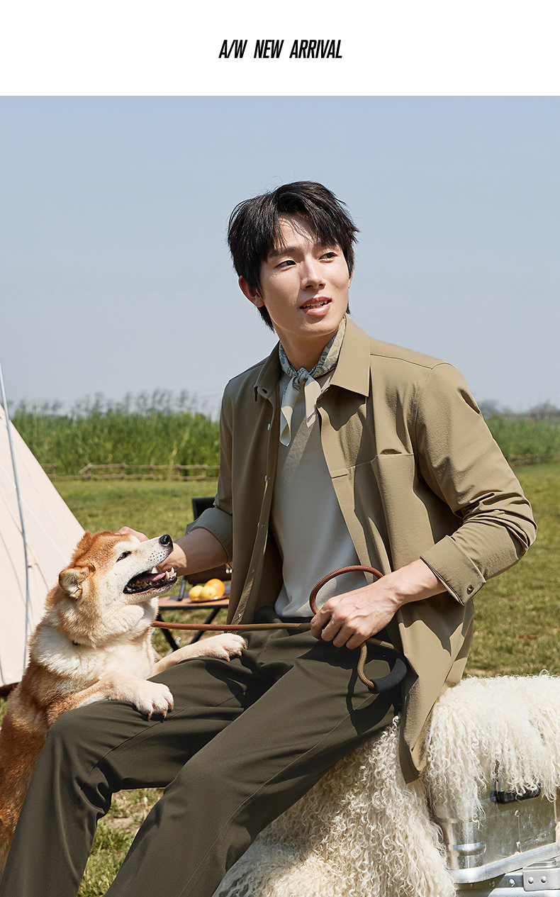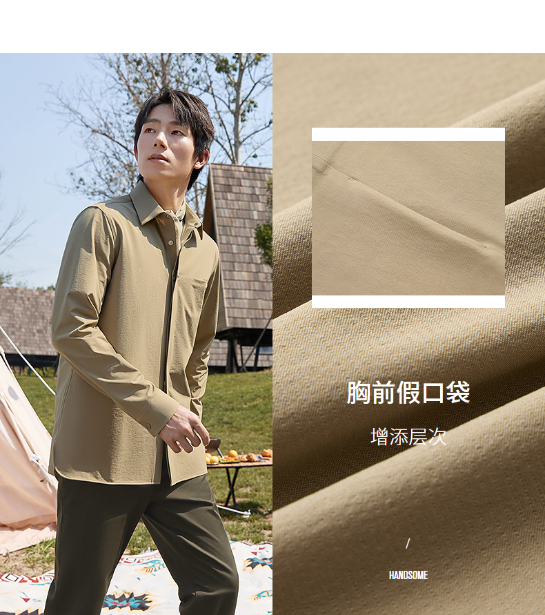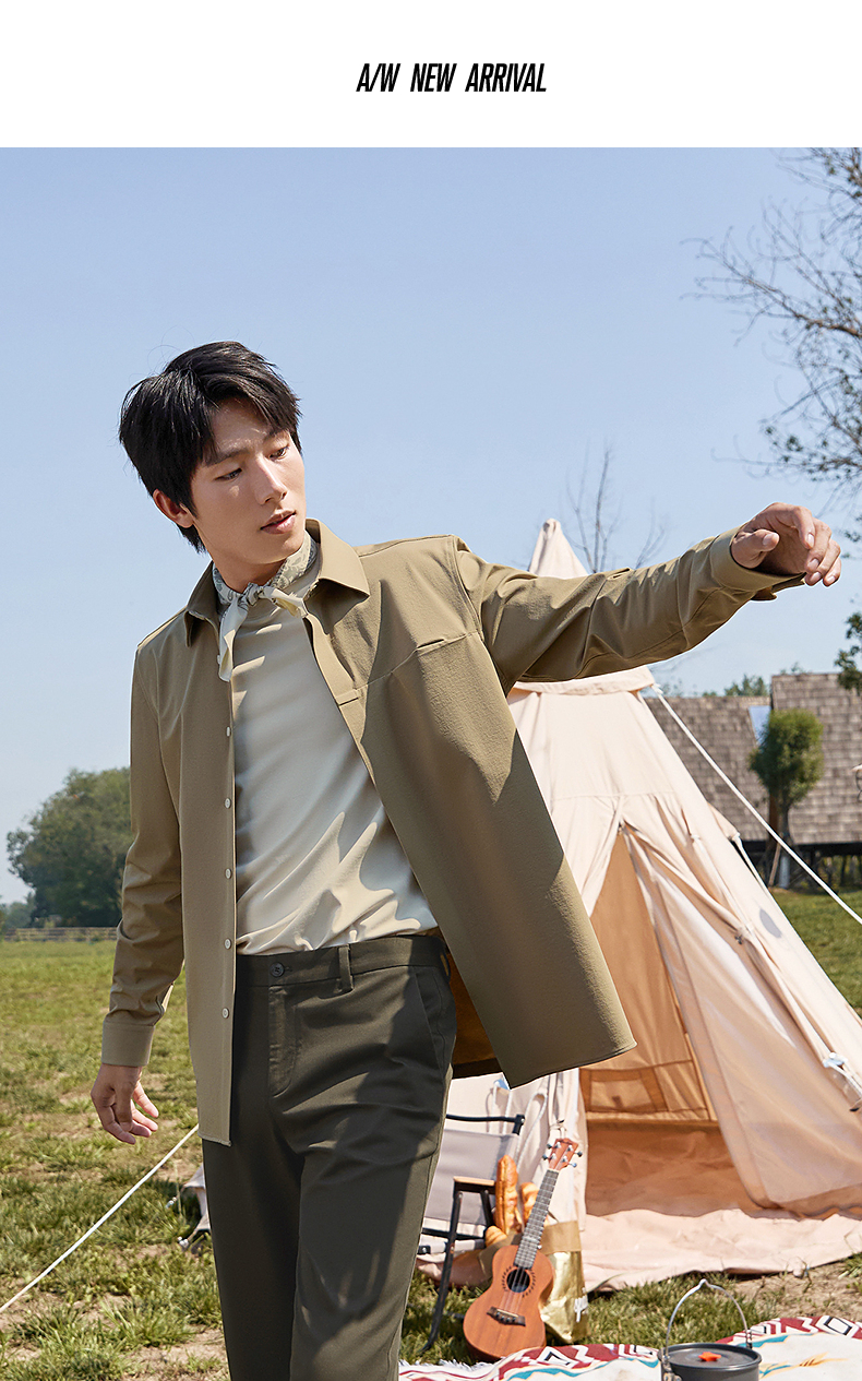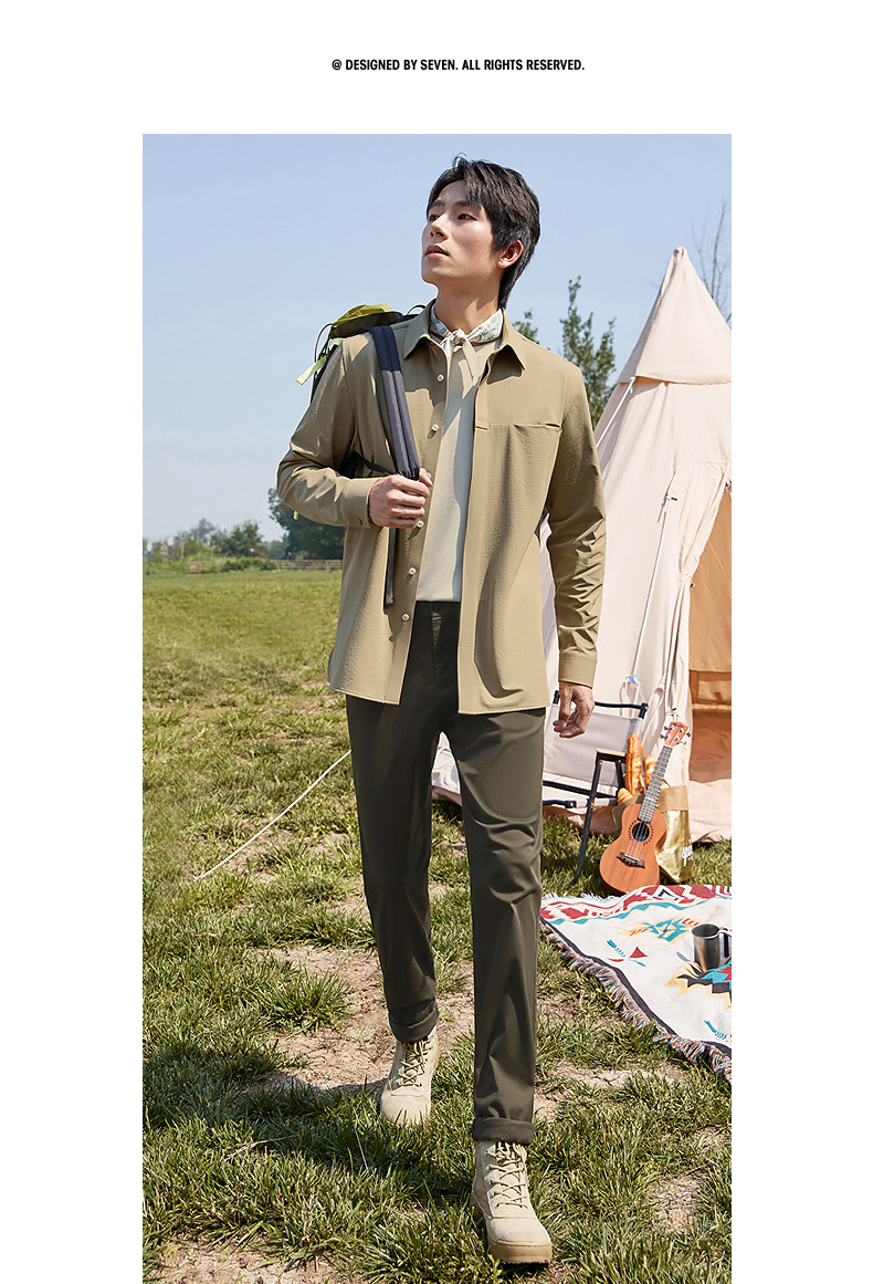 【无缝】柒牌男装长袖衬衫男2024秋冬新款时尚休闲翻领假口袋衬衣 127A70090