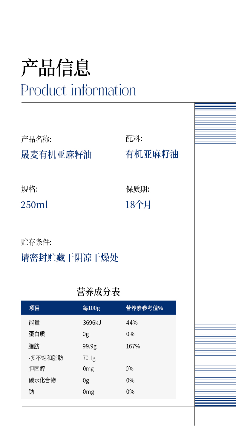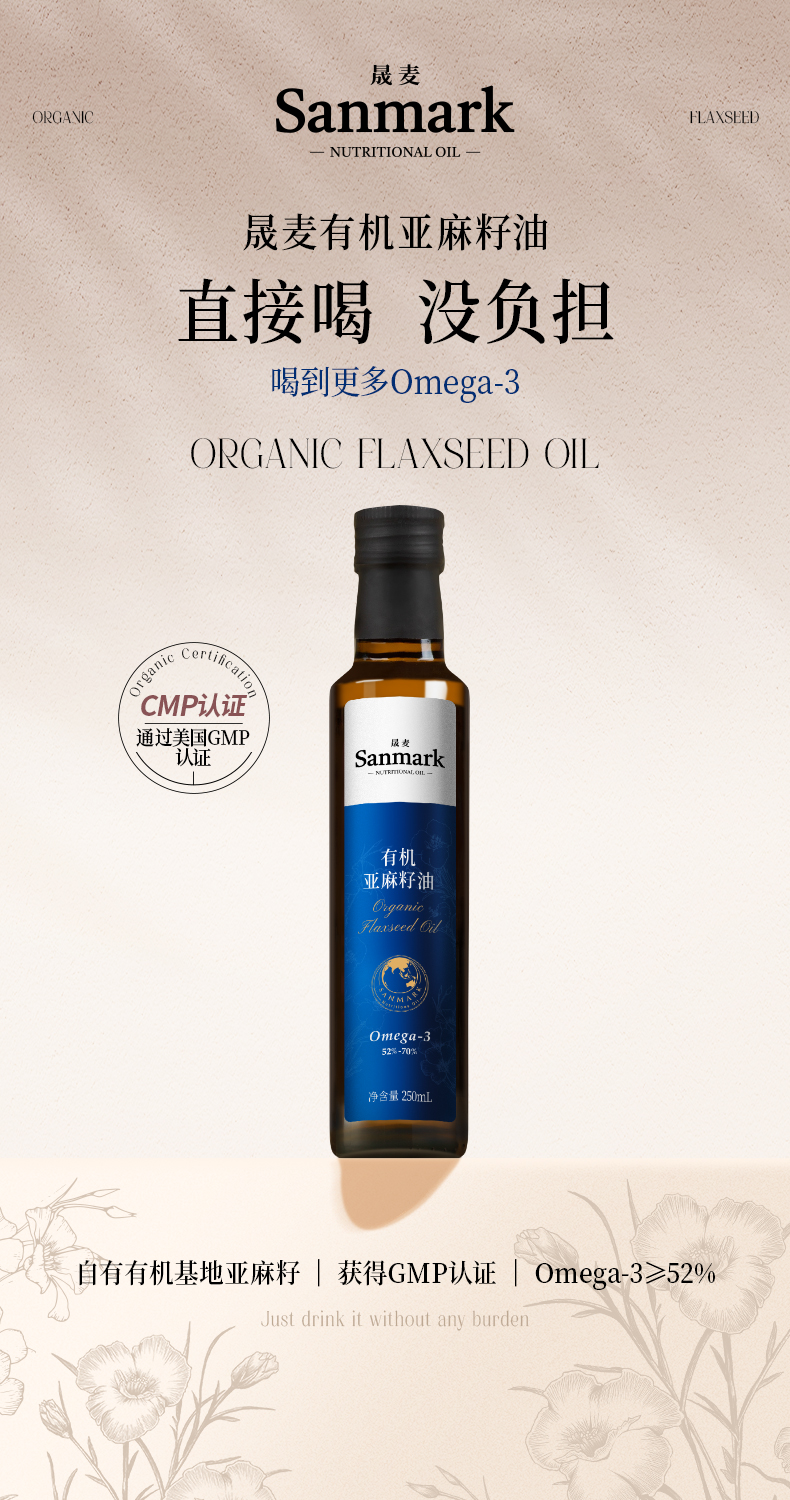 有机亚麻籽油 250ml/瓶【晟麦】
