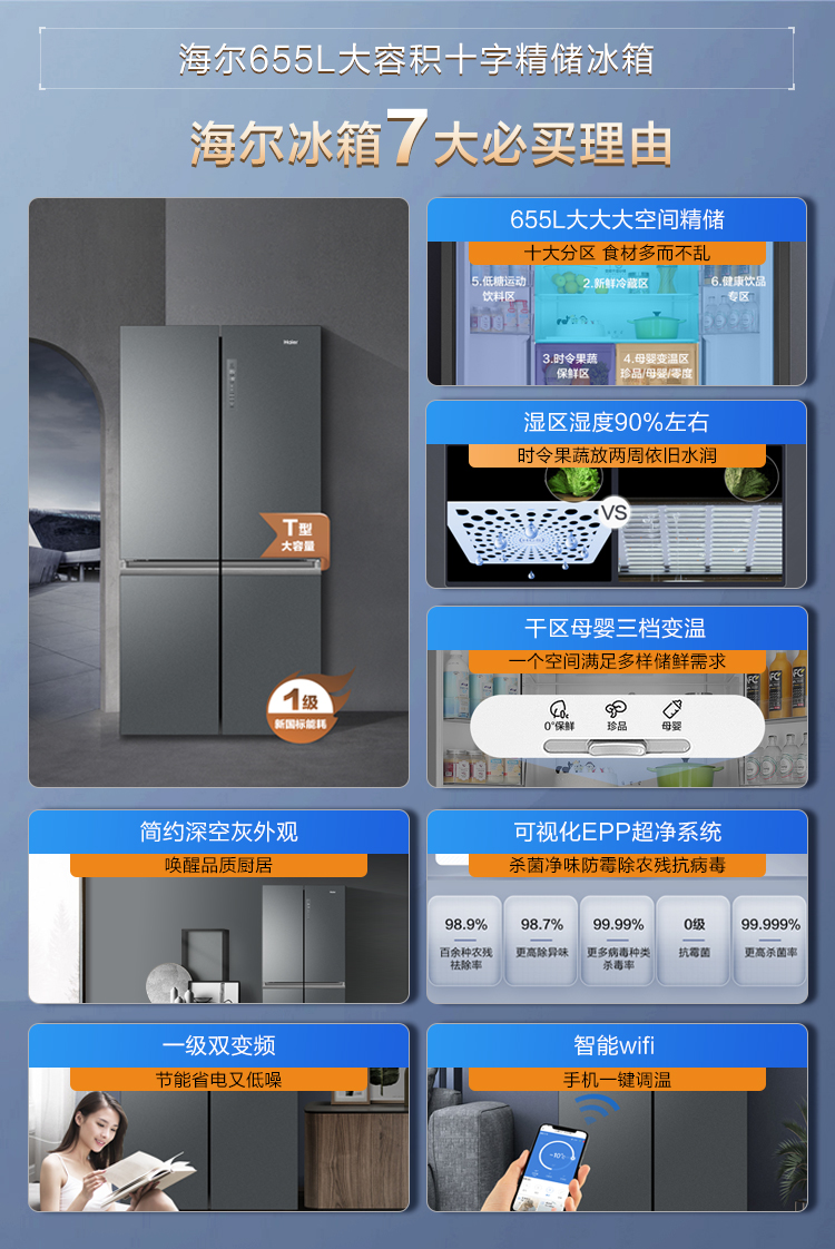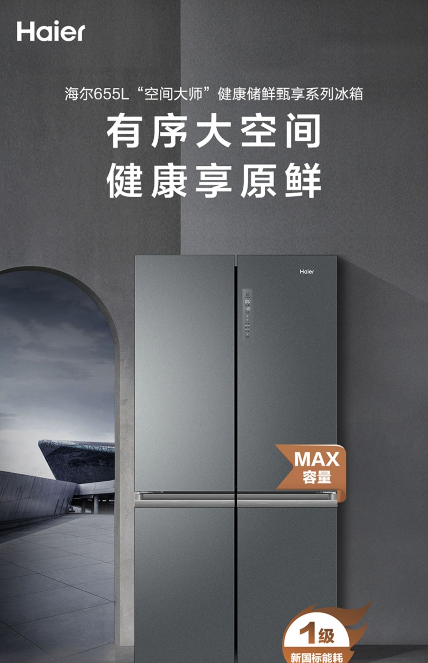 海尔电冰箱655L大容量十字对开四门一级节能家用变频风冷无霜