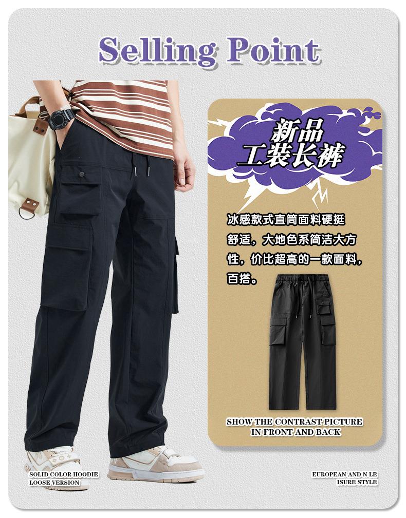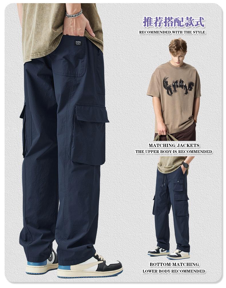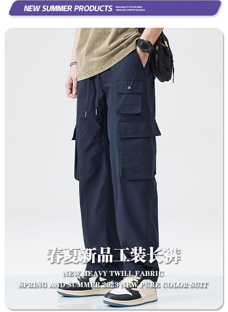 RS男装山系户外直筒休闲裤男装夏款日系立体多口袋机能风工装长裤