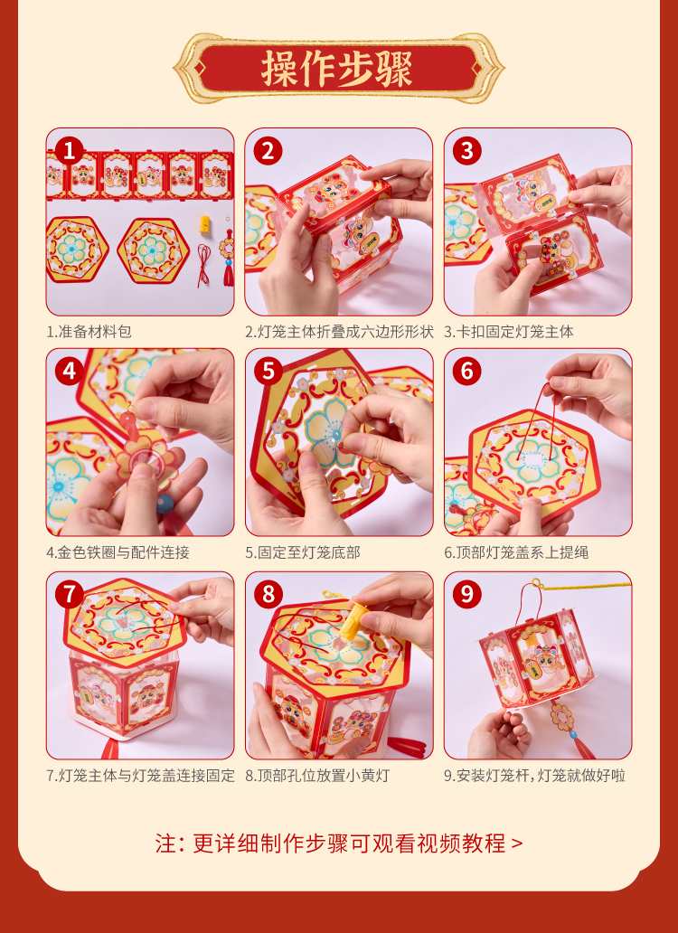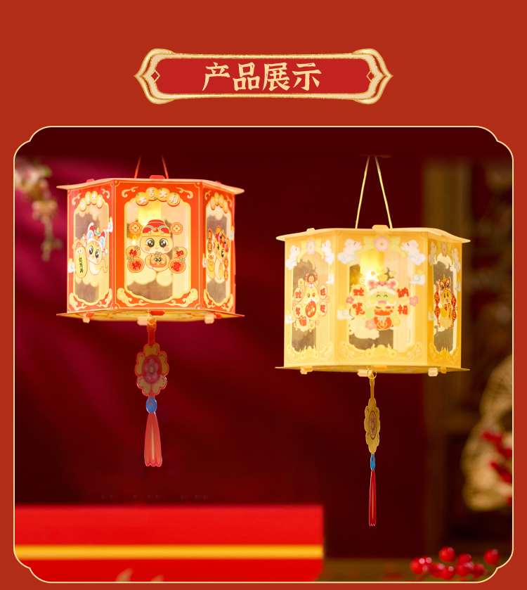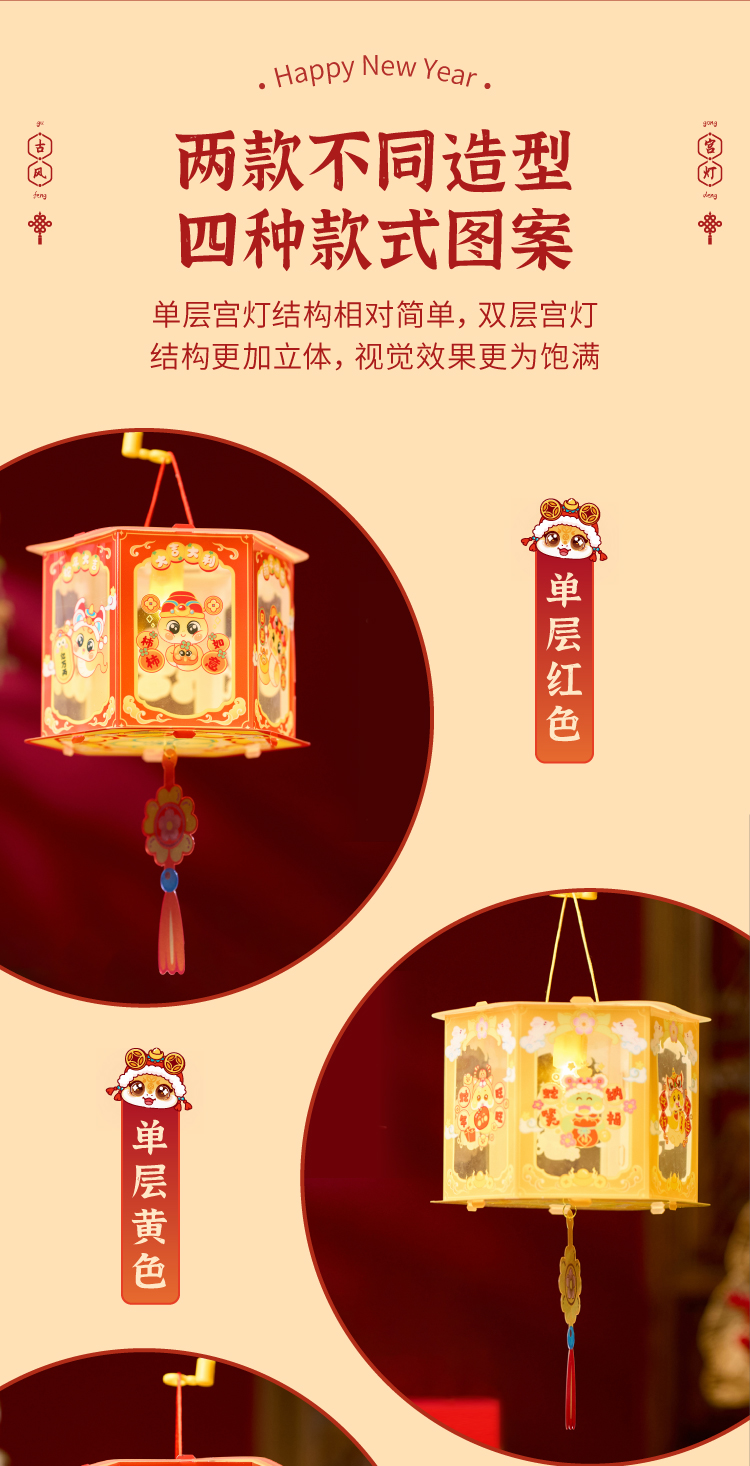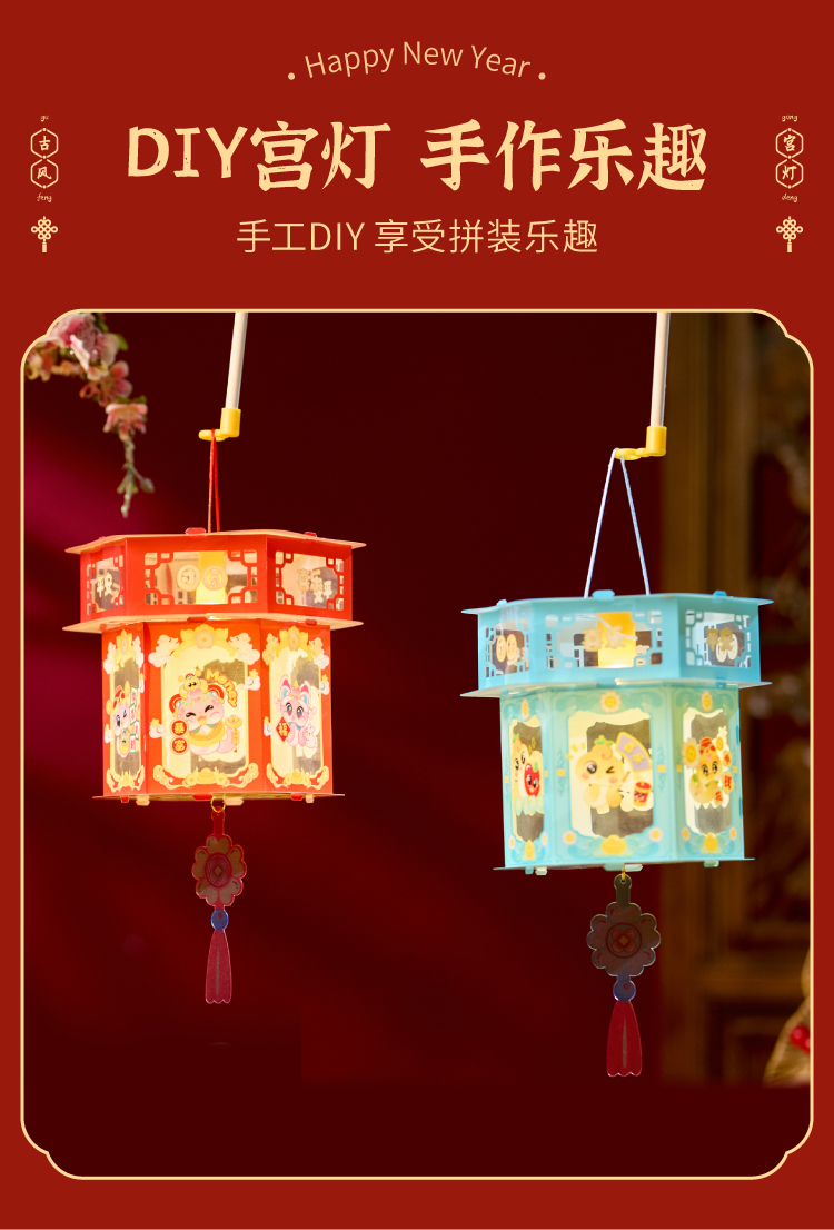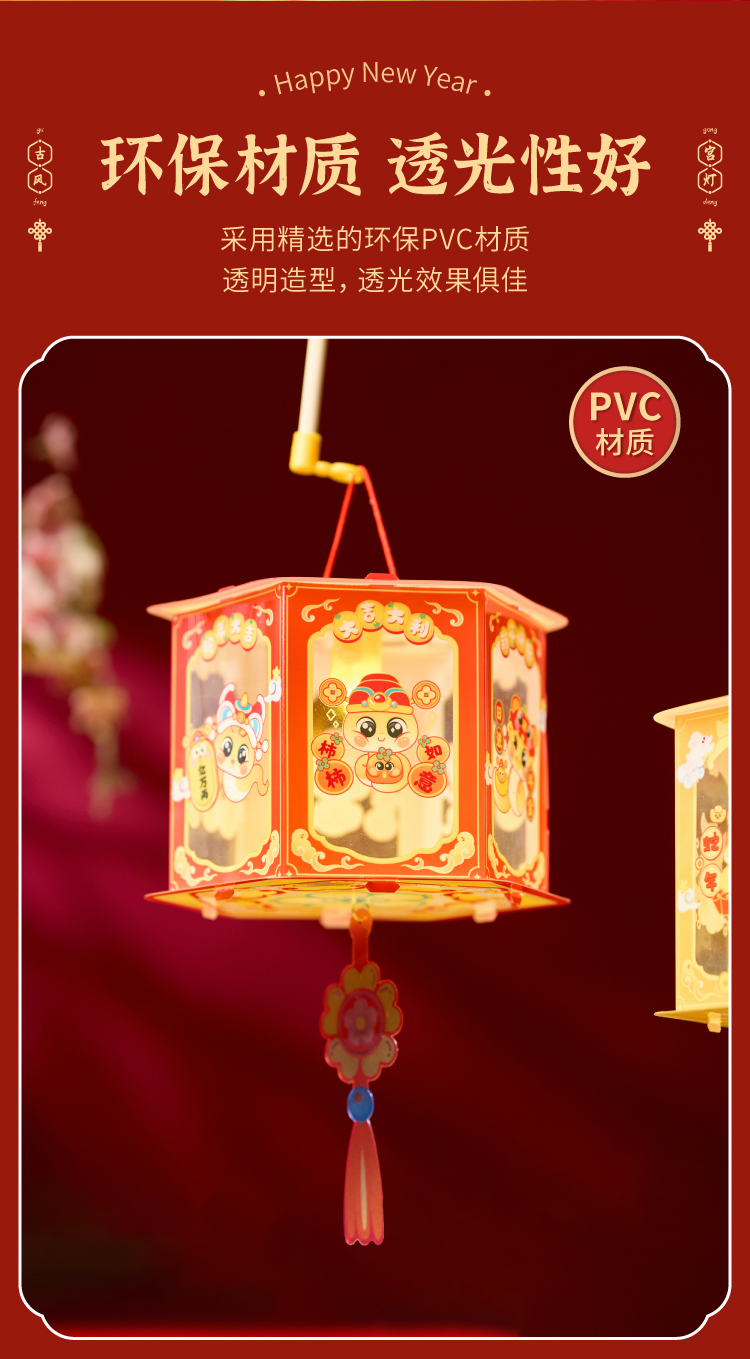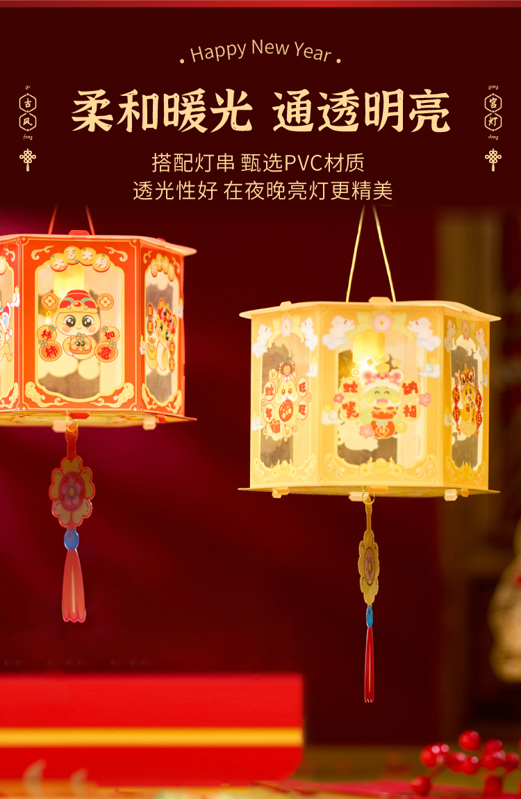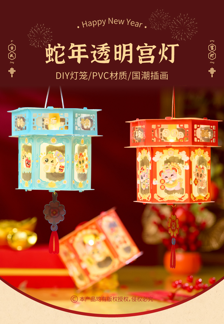 新年春节元旦蛇年透明宫灯手工diy灯笼儿童制作材料包花灯幼儿园