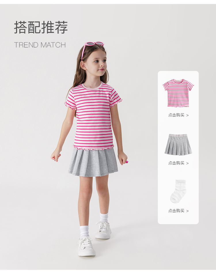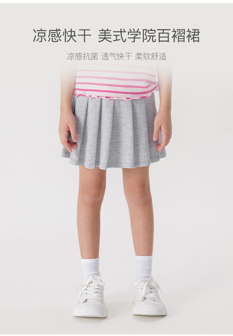 【凉感快干】马克珍妮女童美式学院百褶半身裙短裙夏装新款240638