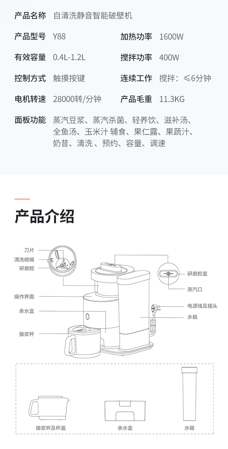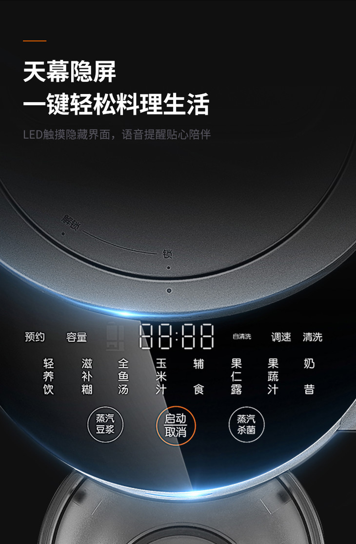 九阳(508872)(Joyoung)破壁机Y88 家用多功能 自清洗静音智能 多维静音 蒸汽速热 智能预约破壁机 料理机 豆浆机