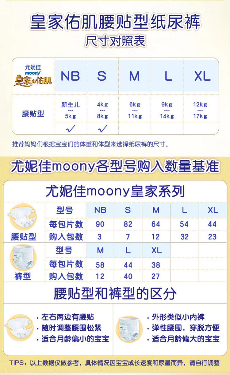 4包装|【新包装】尤妮佳moony皇家佑肌腰贴型纸尿裤婴儿尿不湿大号