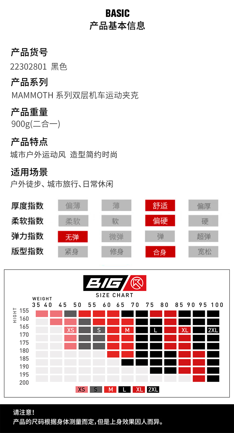 BigK 大K MAMMOTH双层机车运动夹克 城市户外旅游