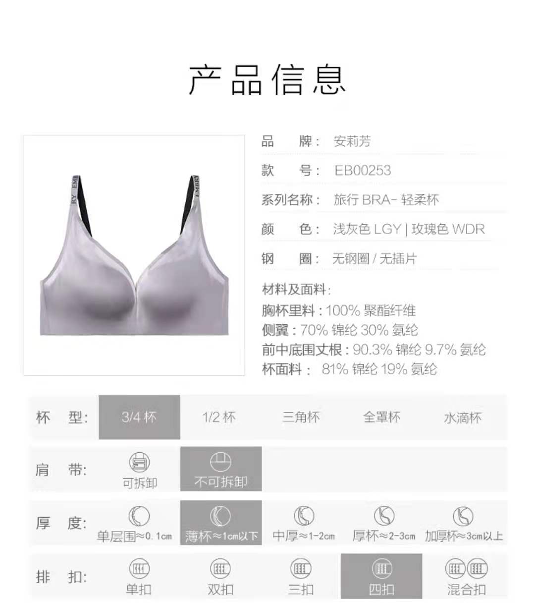 \轻柔杯光面薄款无钢圈运动健步围文胸