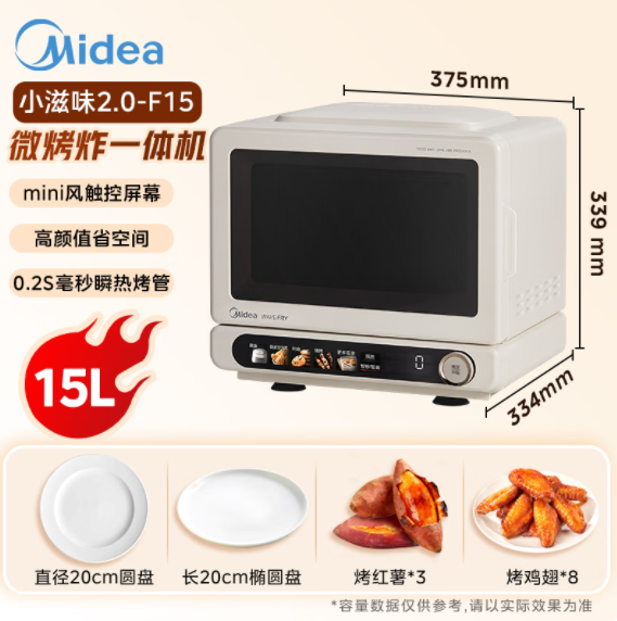 美的(510861)F15小滋味2.0微烤炸一体机 彩膜触控变频平板顶部烤管热风高颜值微波炉电烤箱空气炸一体