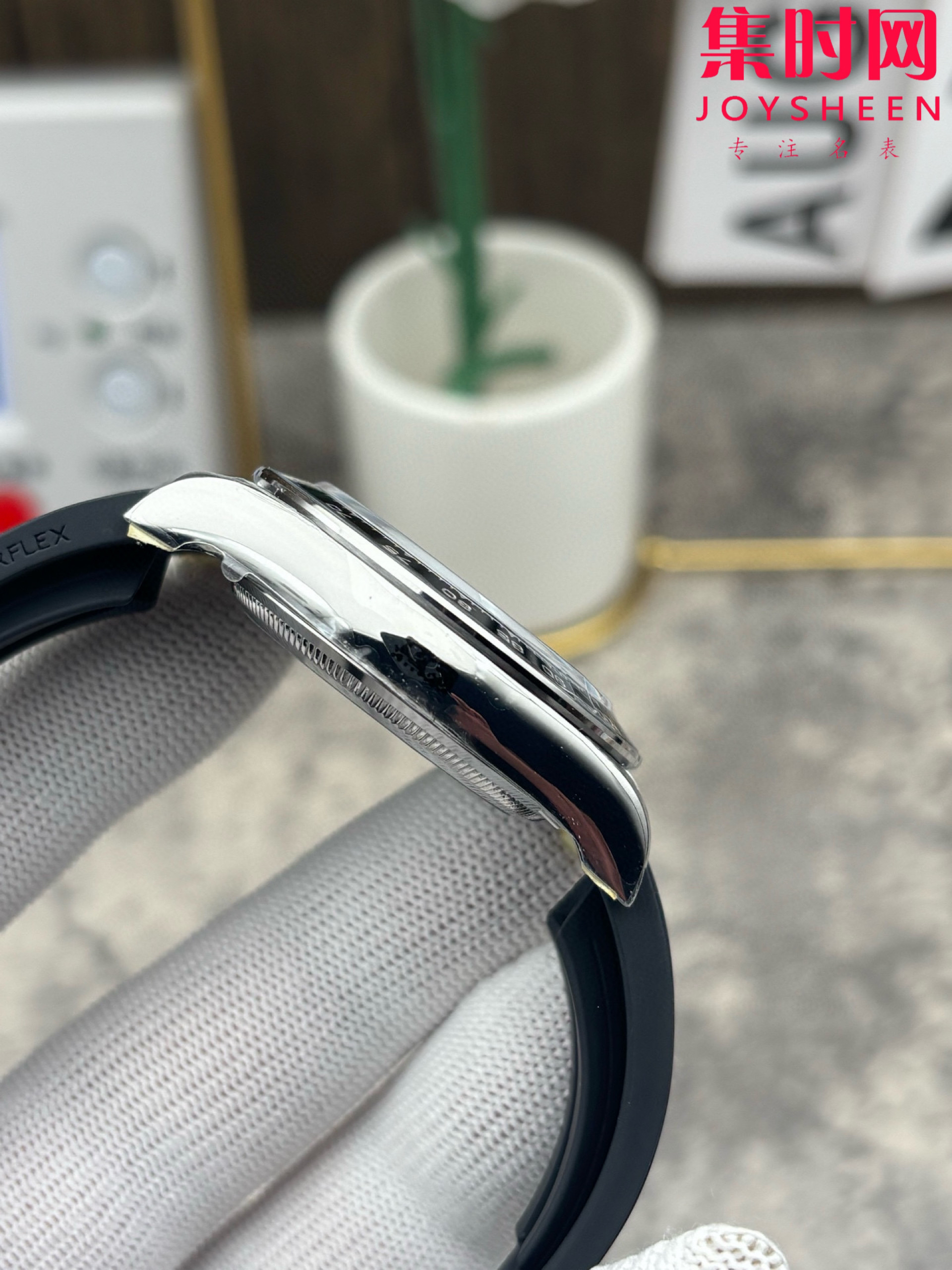 六点位增加皇冠标志,表壳与表带的工艺提升,表耳曲线优化,正品迪通拿的表壳设计以流畅线条著称(如蚝式表壳的狐形表耳)通过强化曲线效果,更接近原版的佩戴舒适度!