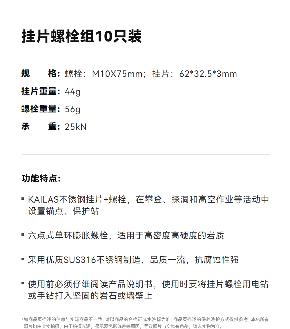 KAILAS凯乐石 户外运动 挂片螺栓组10只装 EA201S