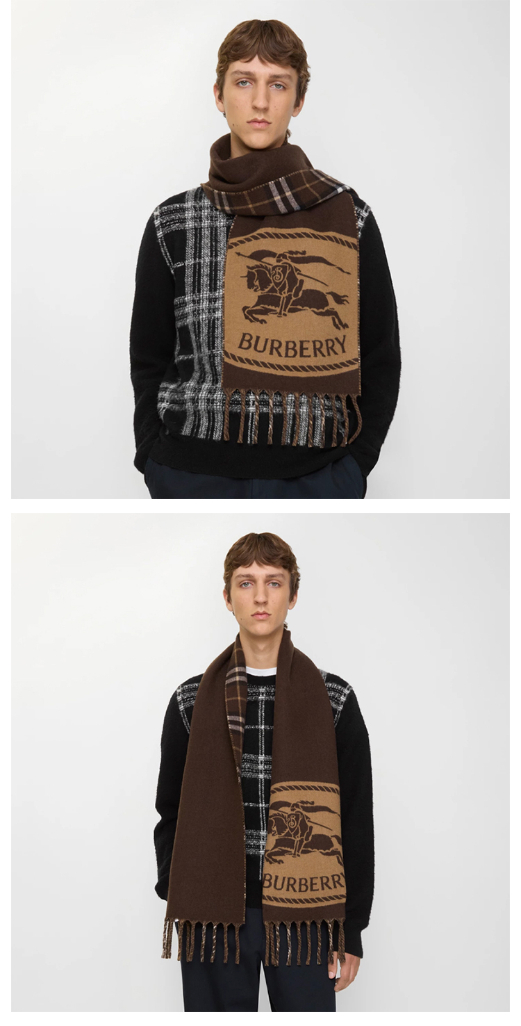 BURBERRY 巴宝莉 男士双面两用马术骑士印章围巾 混色 8112977 B7313