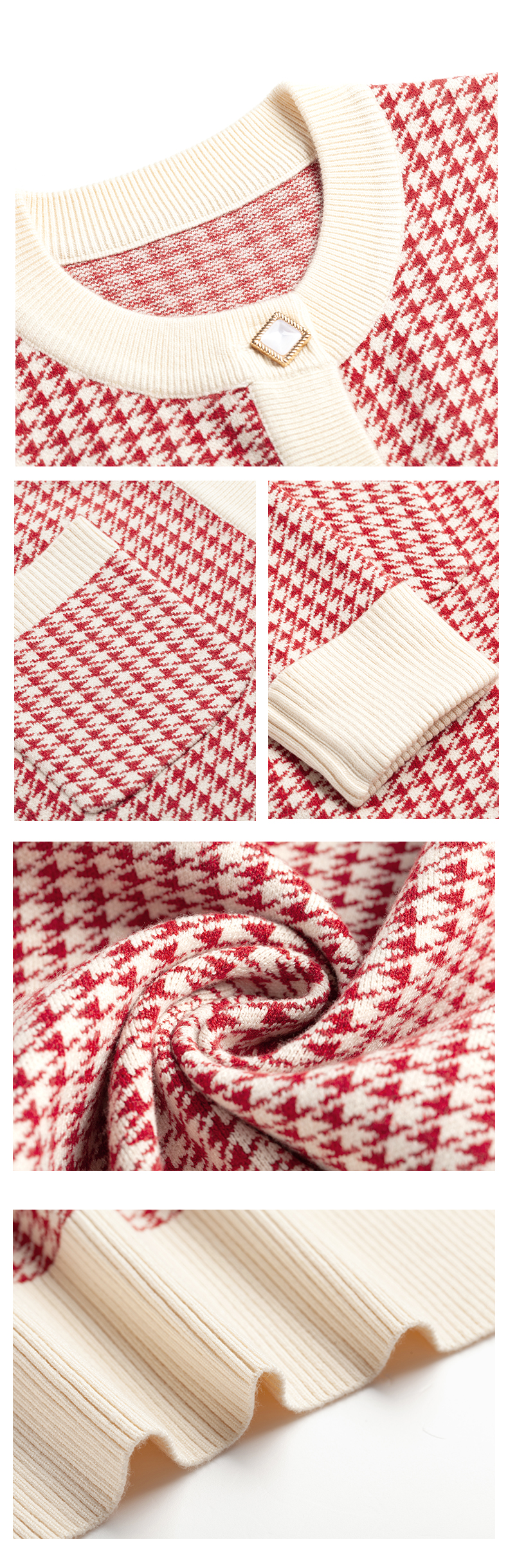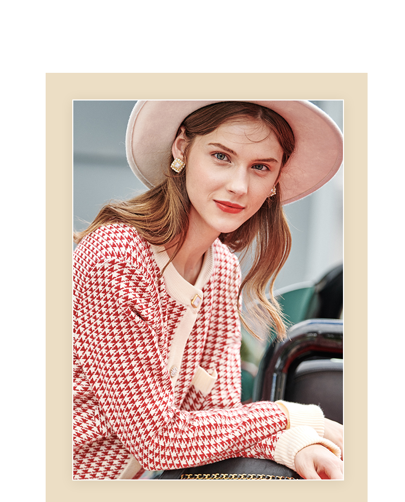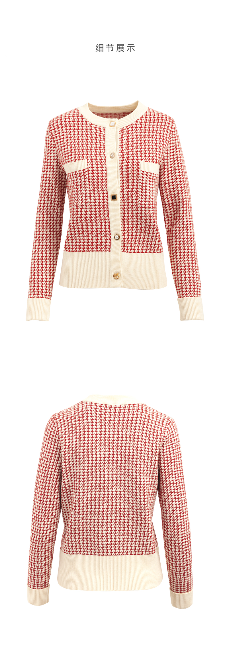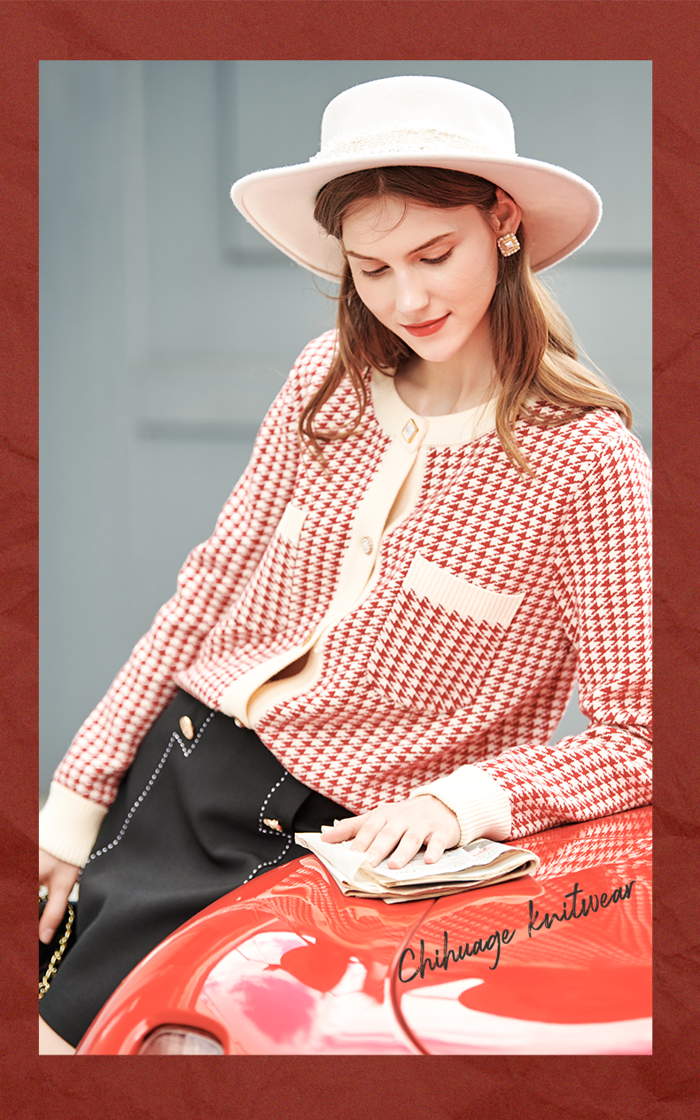 【欧芮儿会员日】【满300-30元】【满600-60元】OLrain欧芮儿法式红色格纹针织开衫女早春2023年新款外穿毛衣外套