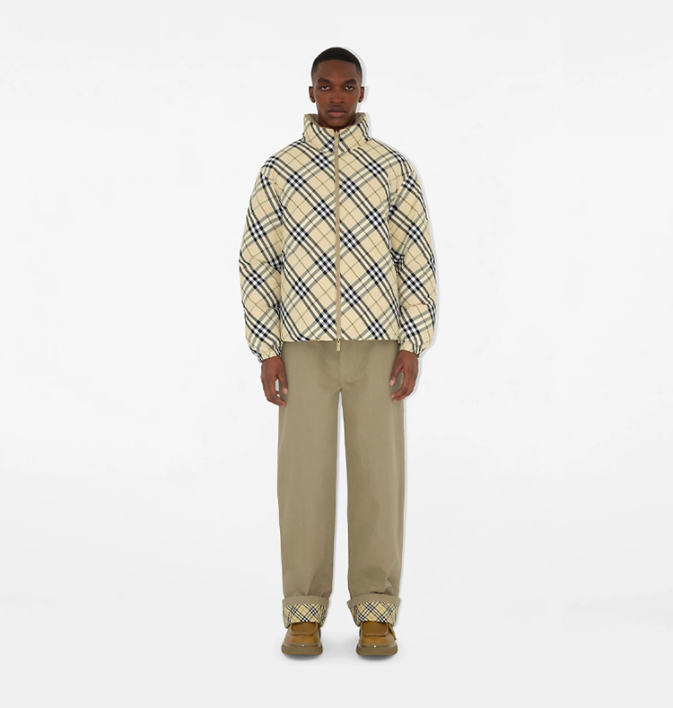 BURBERRY 巴宝莉 男士字母徽标印花双面格纹连帽羽绒服 格子 8098487 C1506