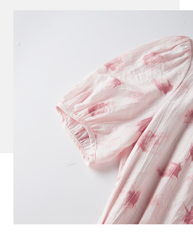 【五折购】熙世界粉色晕染碎花连衣裙2025年夏季新款浪漫温柔风泡泡袖裙子