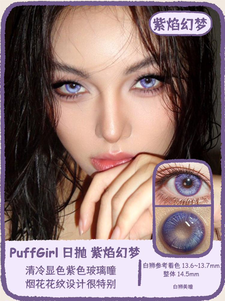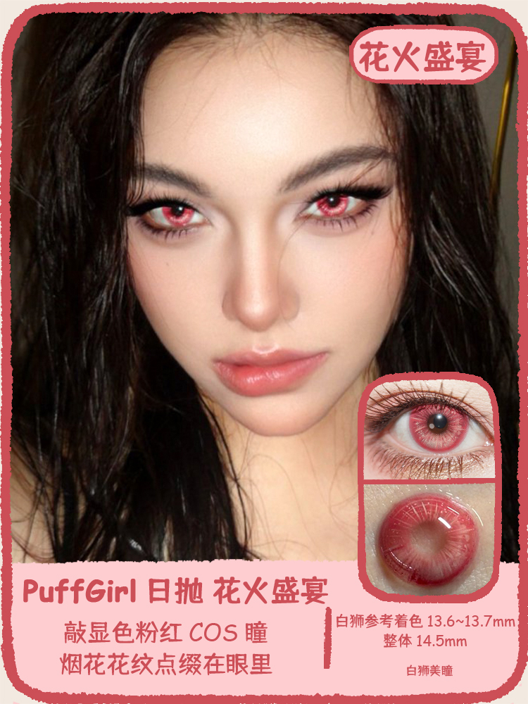 Puff Girl旗下 |花火盛宴&星尘余烬&浅空光轮/紫焰幻梦 |14.5mm白狮参考着色中大直径 日抛cos瞳2片