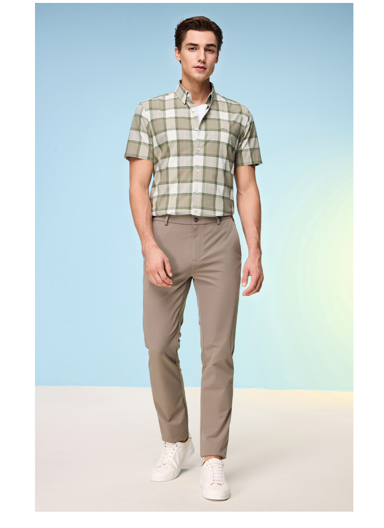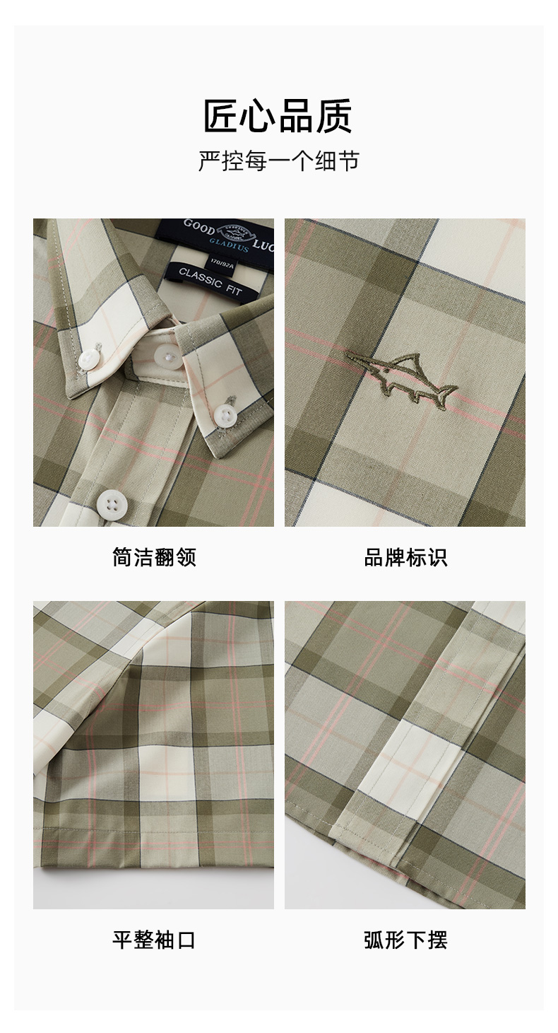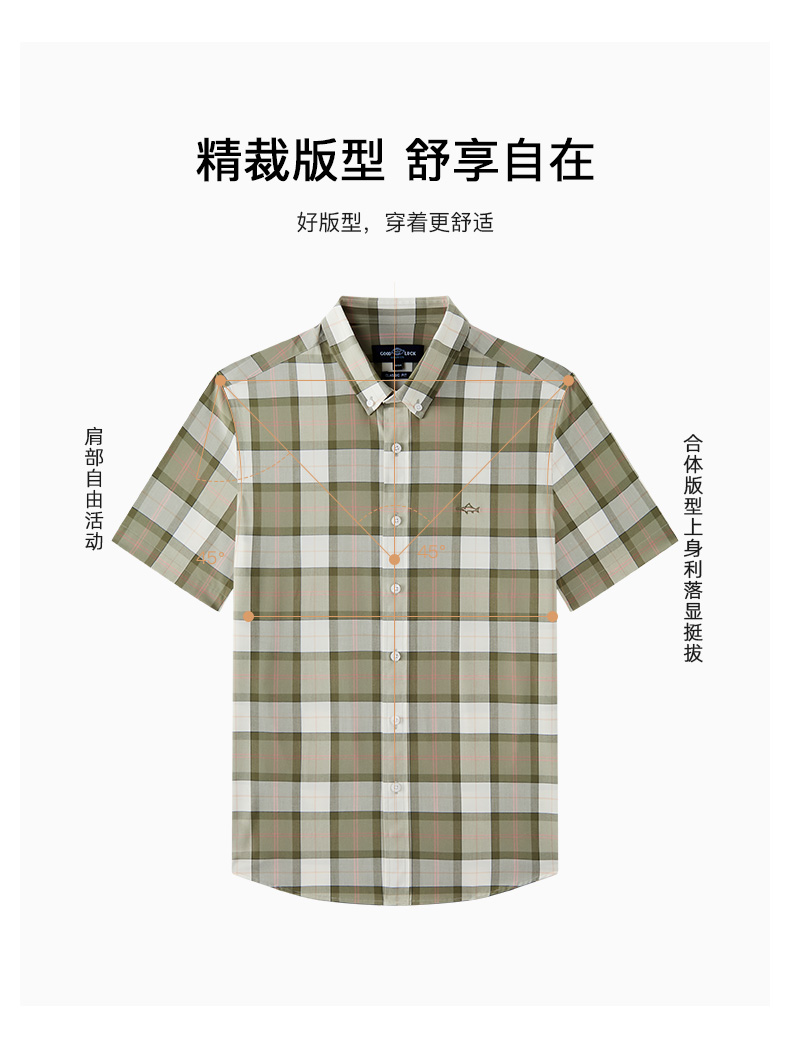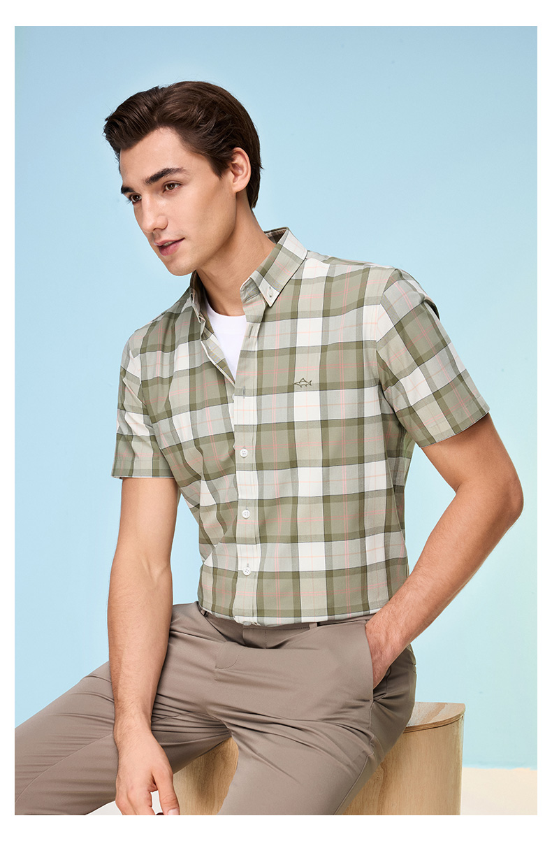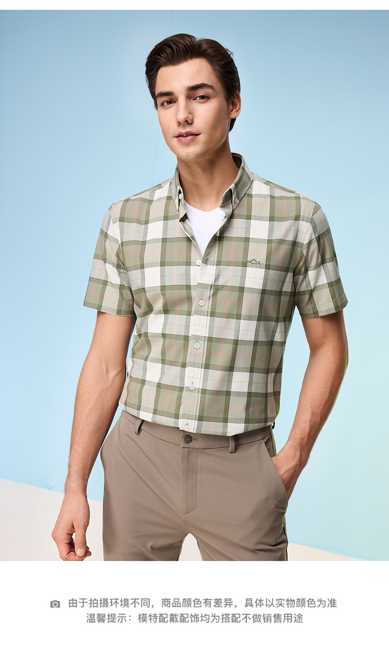 【莫代尔】德鲨2026夏新款短袖格子衬衫男撞色休闲上衣服打底衬衣