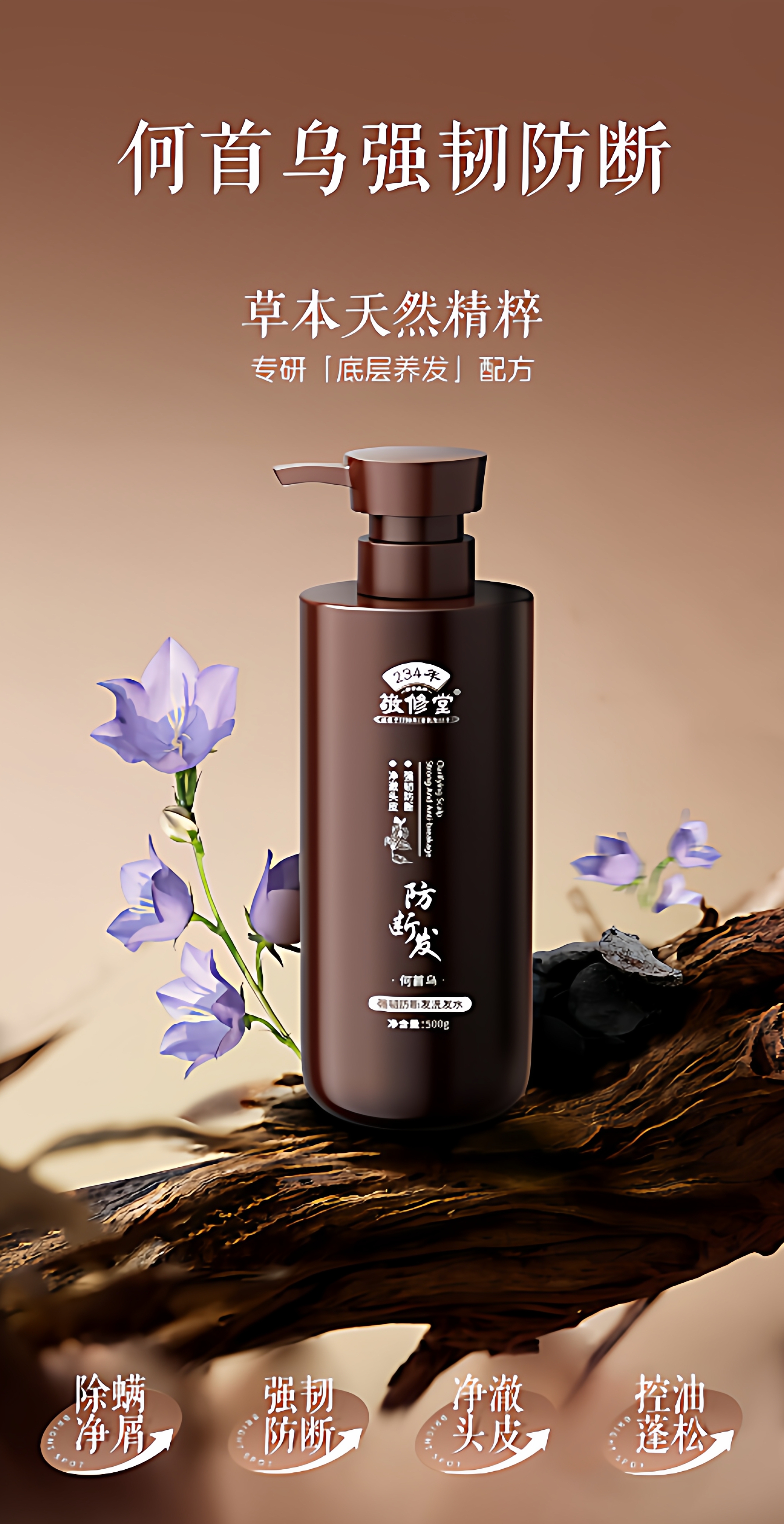 【新品上线 买2瓶送护发素1瓶】敬修堂何首乌强韧防断发洗发水500ml 大瓶装草本配方顺滑滋养男女通用