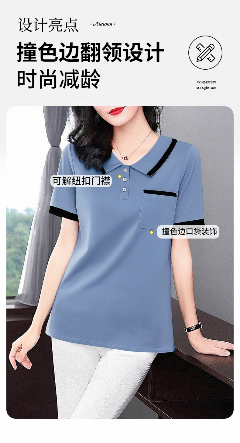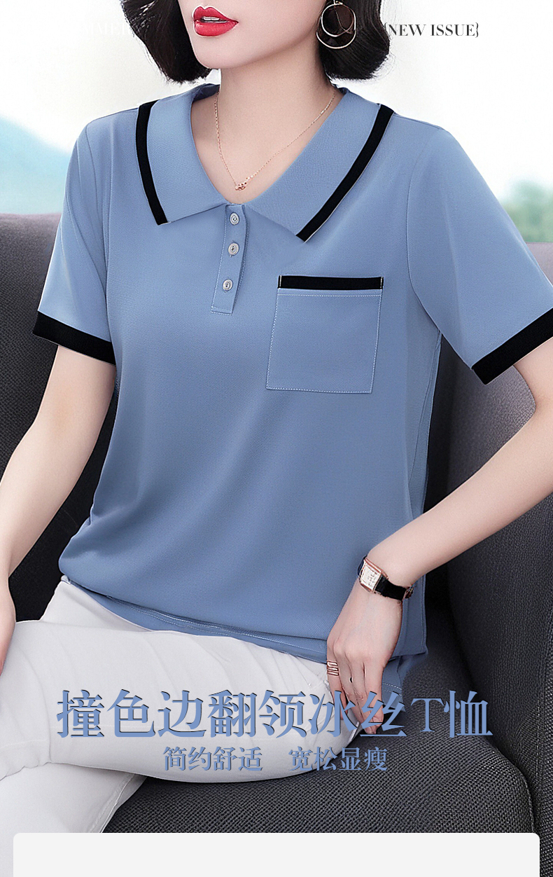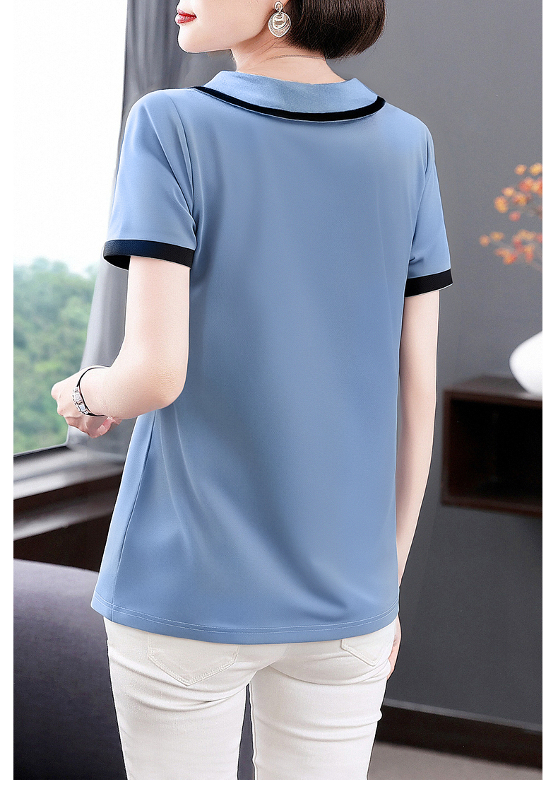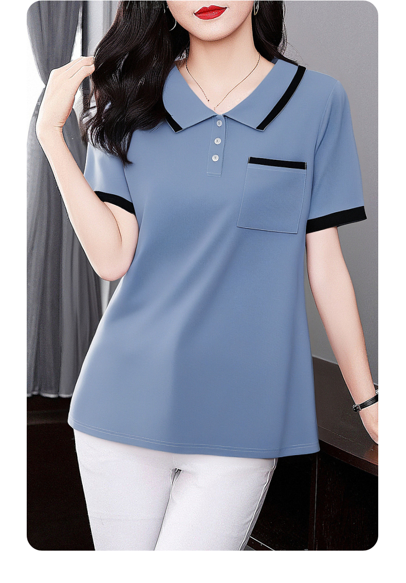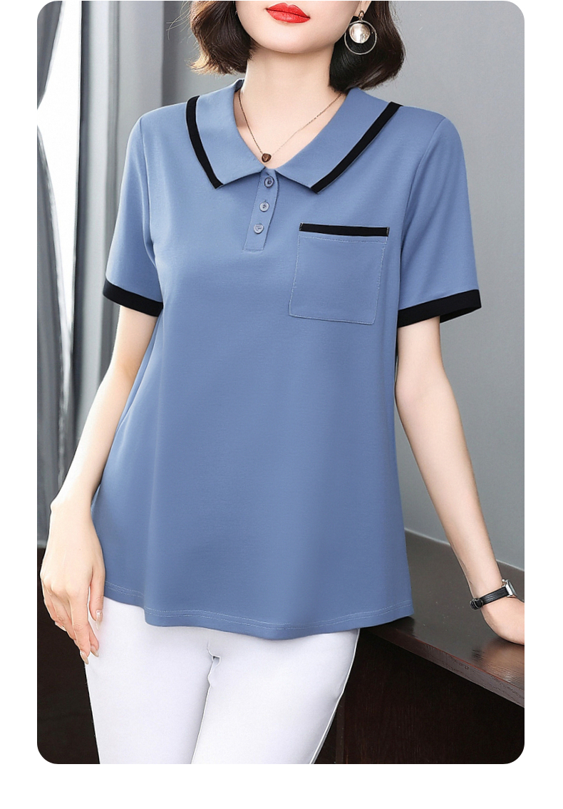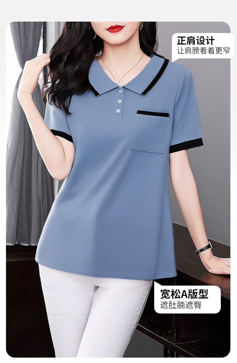 芳妮诗2025夏季新款大码女士T恤胖mm宽松翻领短袖减龄娃娃领上衣