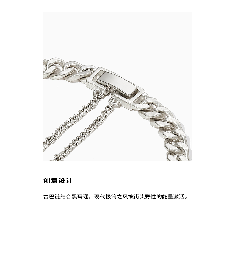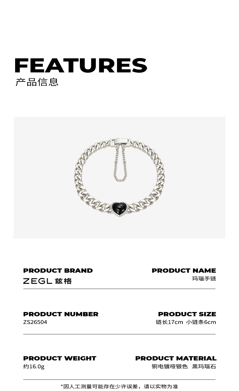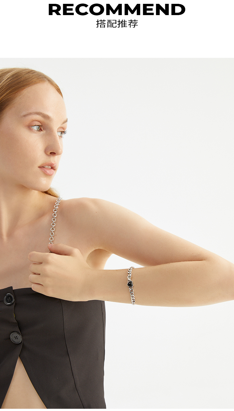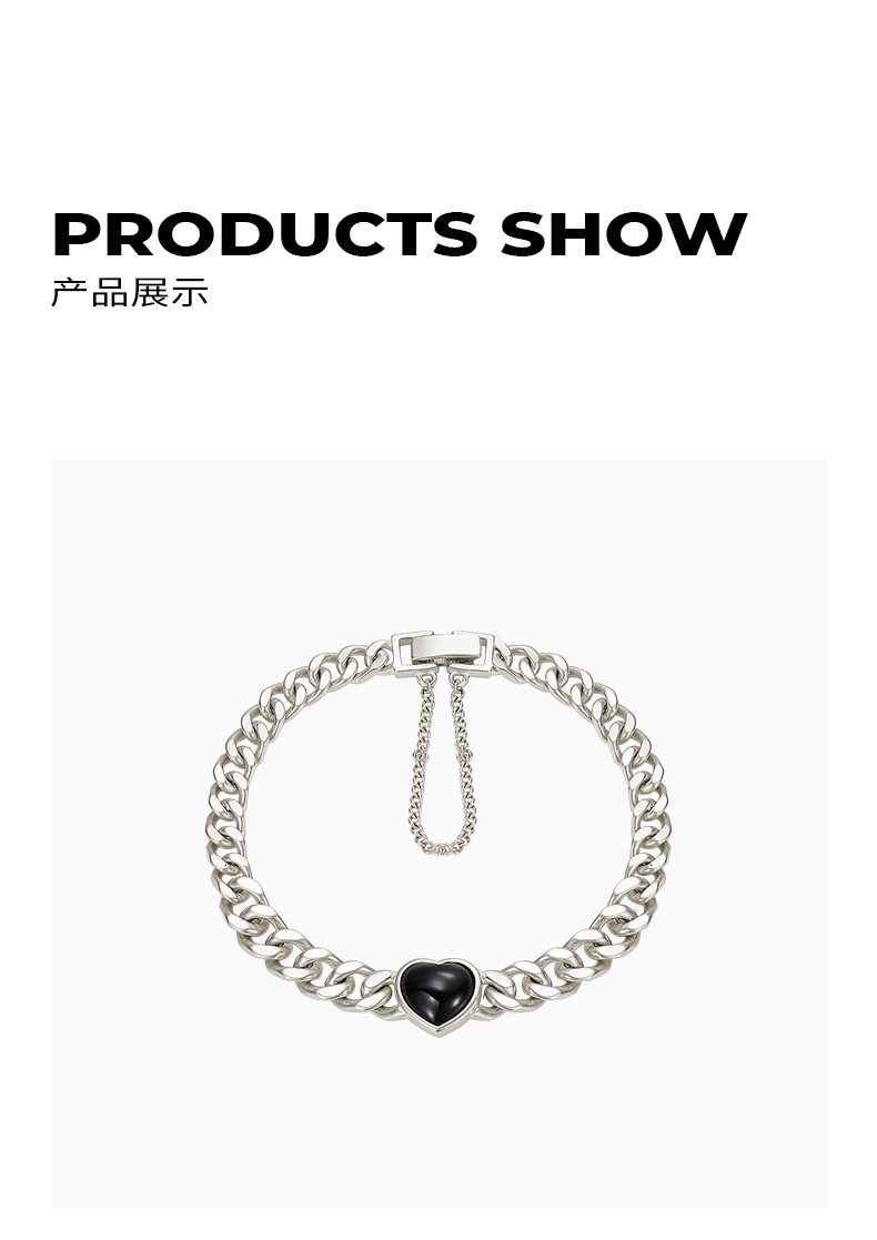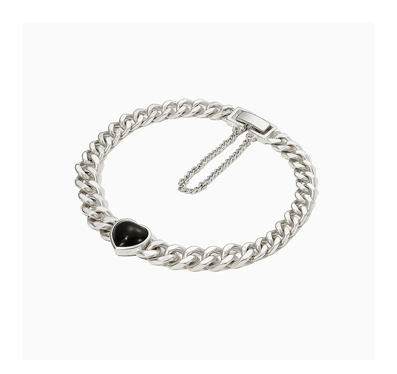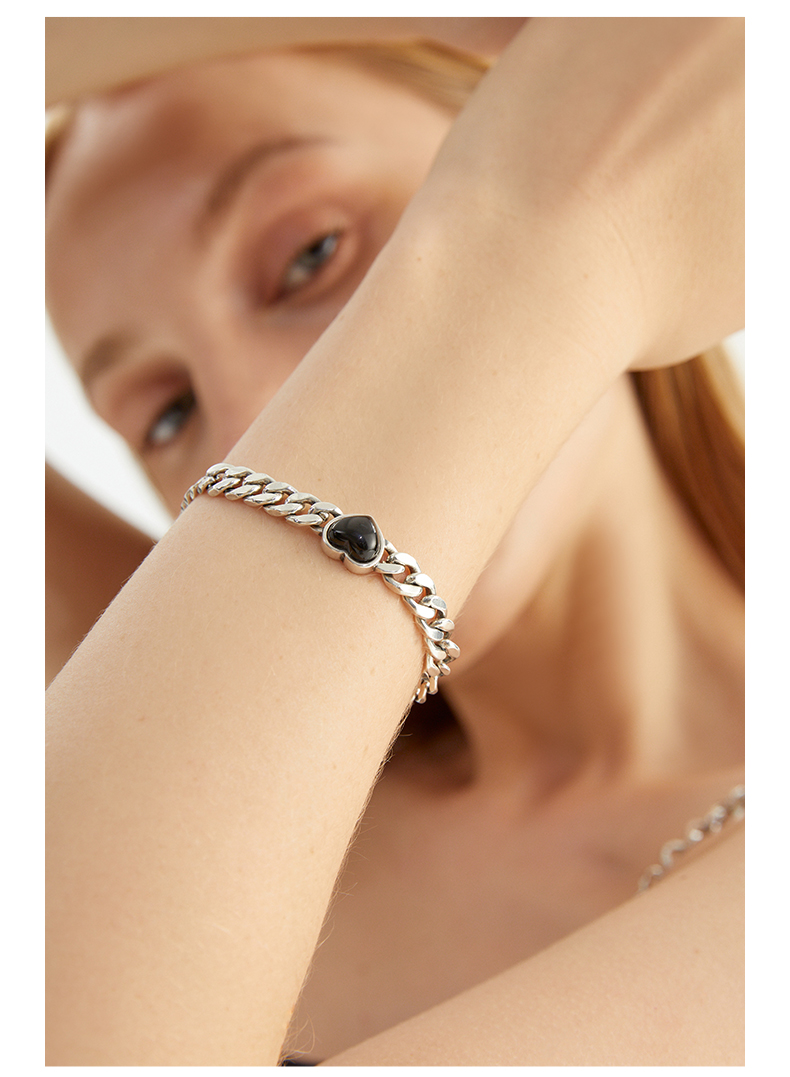 ZEGL黑玛瑙爱心古巴手链女夏ins嘻哈潮酷复古小众设计手饰配饰品