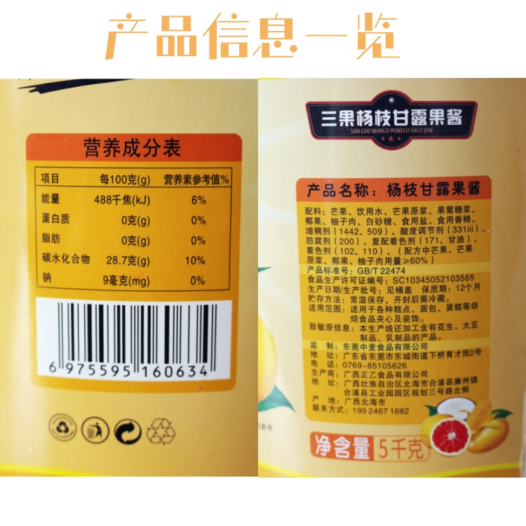 5kg 三果 杨枝甘露果酱 果粒馅 蛋糕夹层饮品果馅披萨圣代果粒果酱