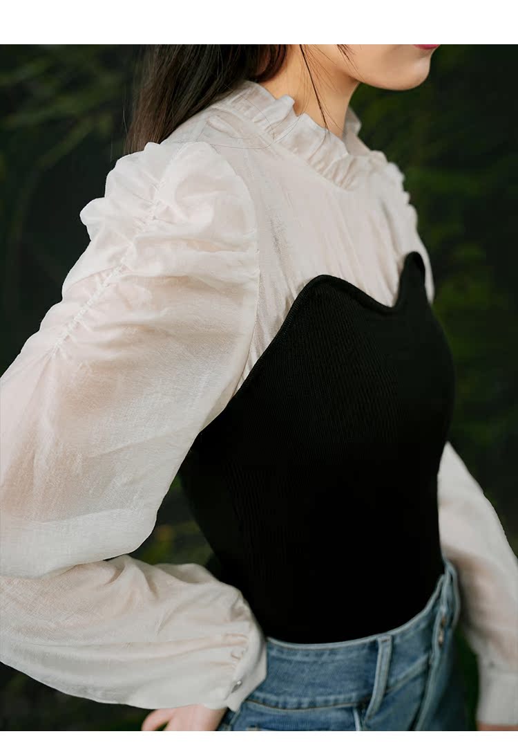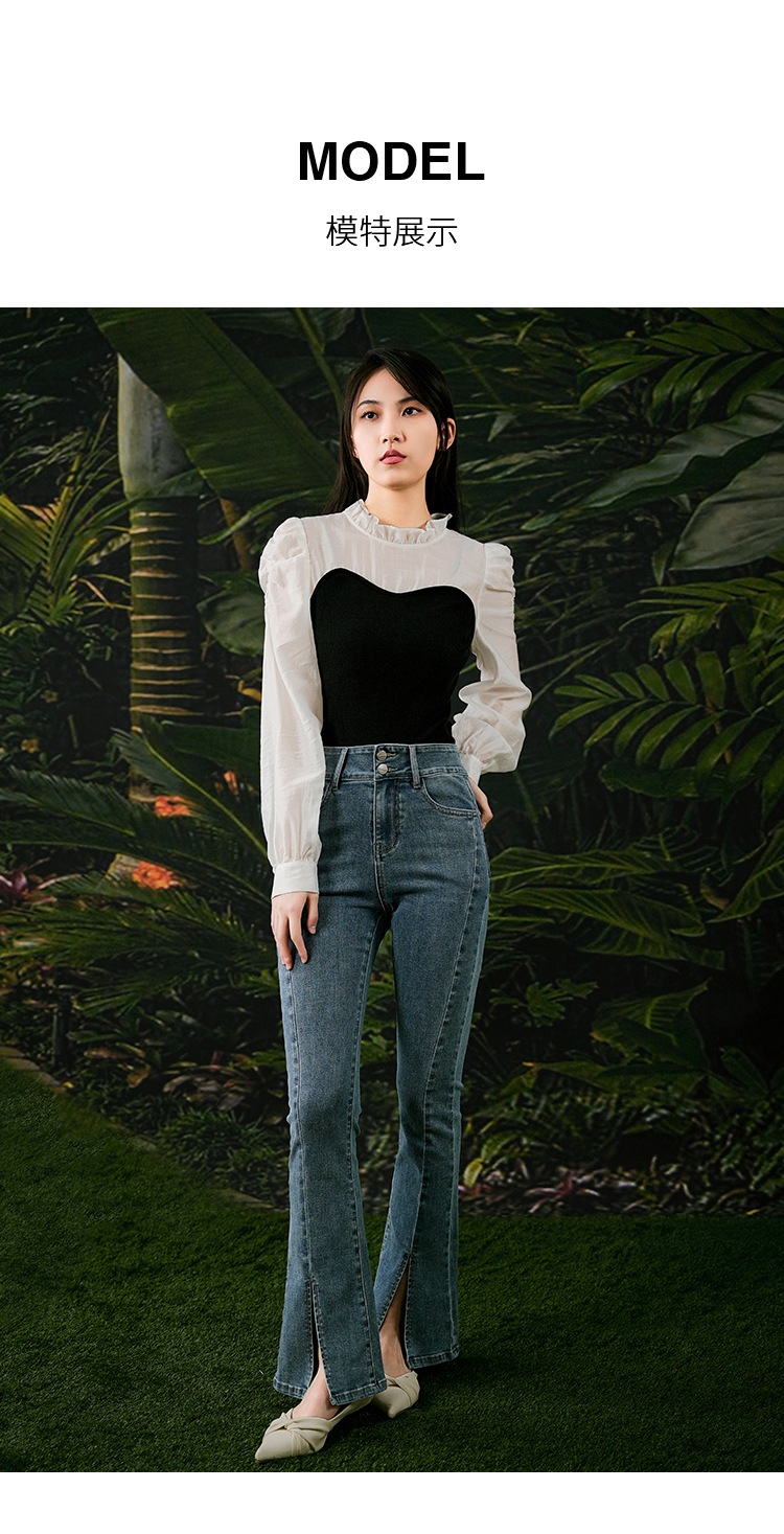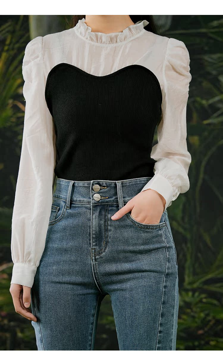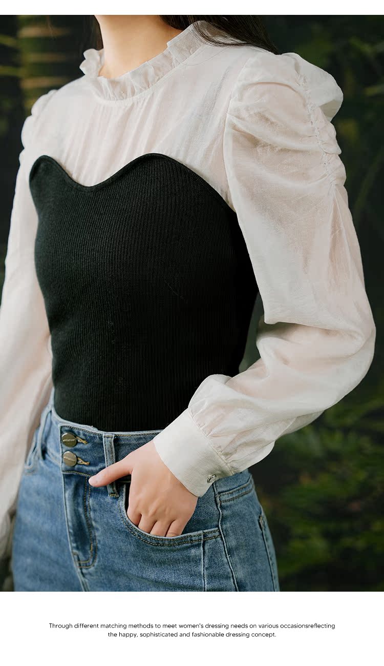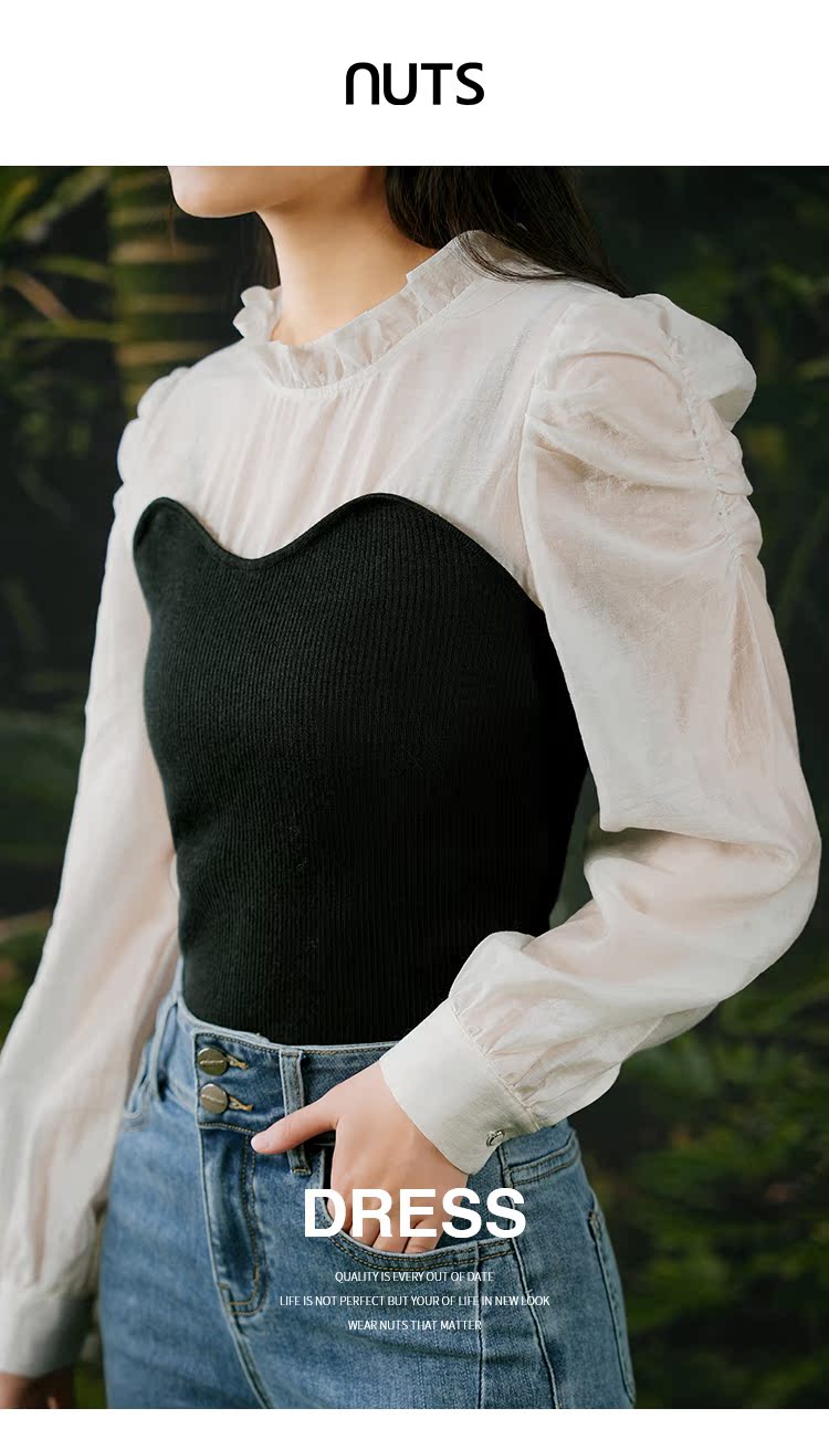 NUTS春秋季新款法式修身时尚拼接套头针织衫假两件女411051019