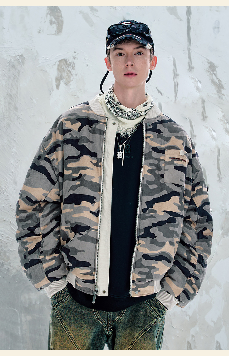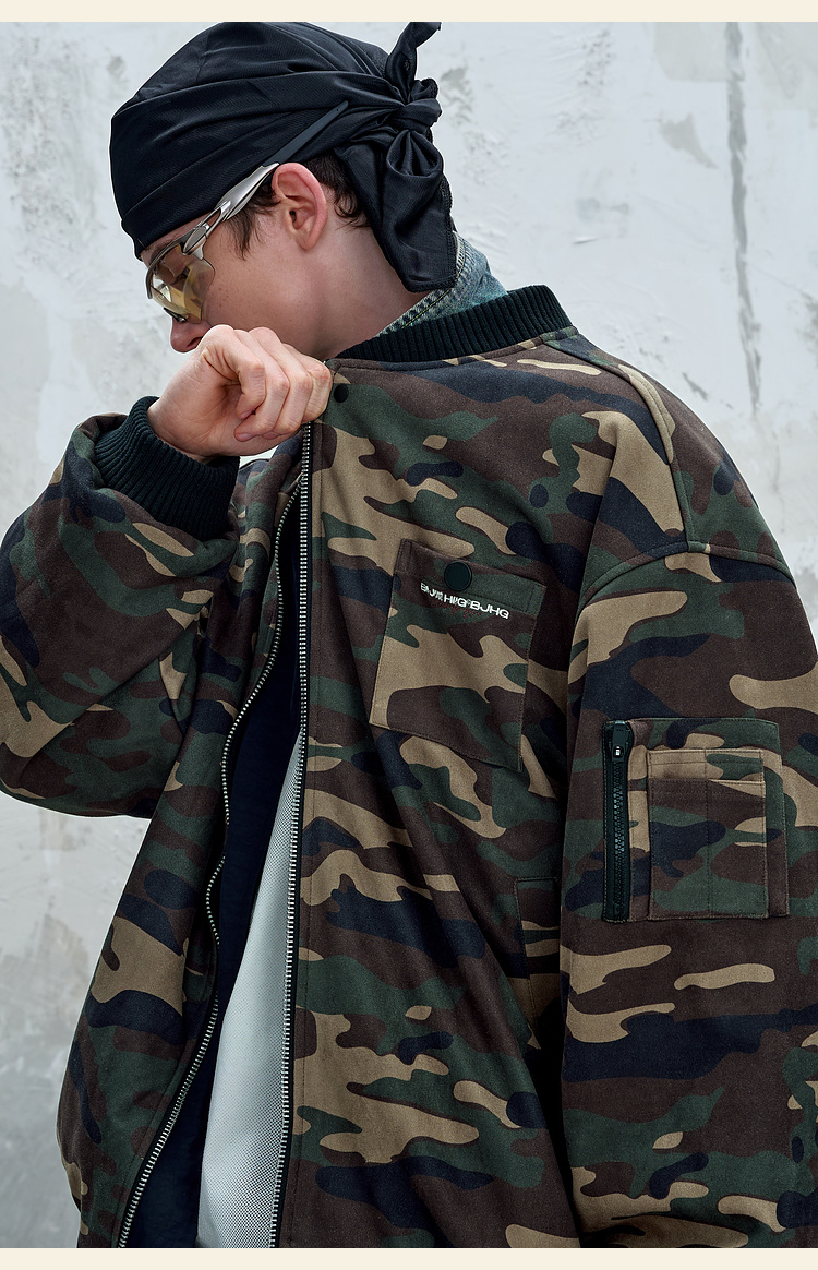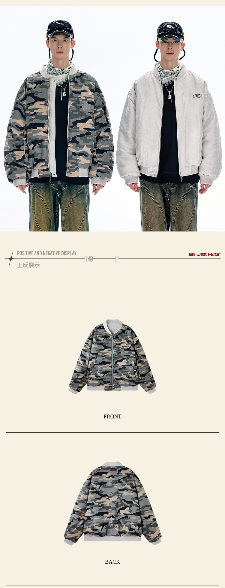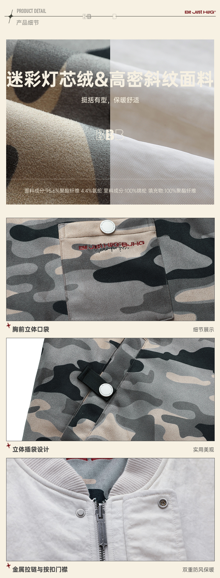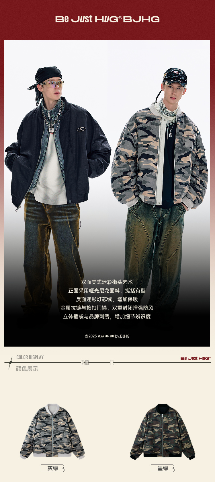 BJHG不计后果两面穿迷彩棉服男款冬季灯芯绒飞行外套加厚防寒棉衣