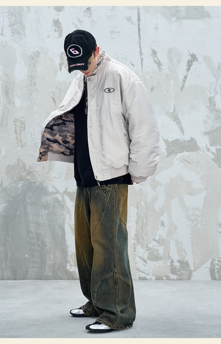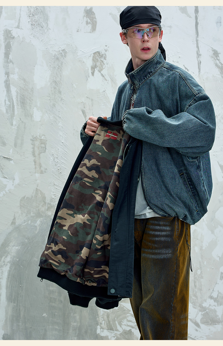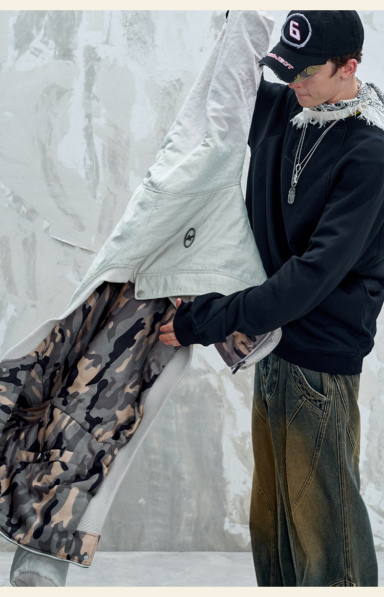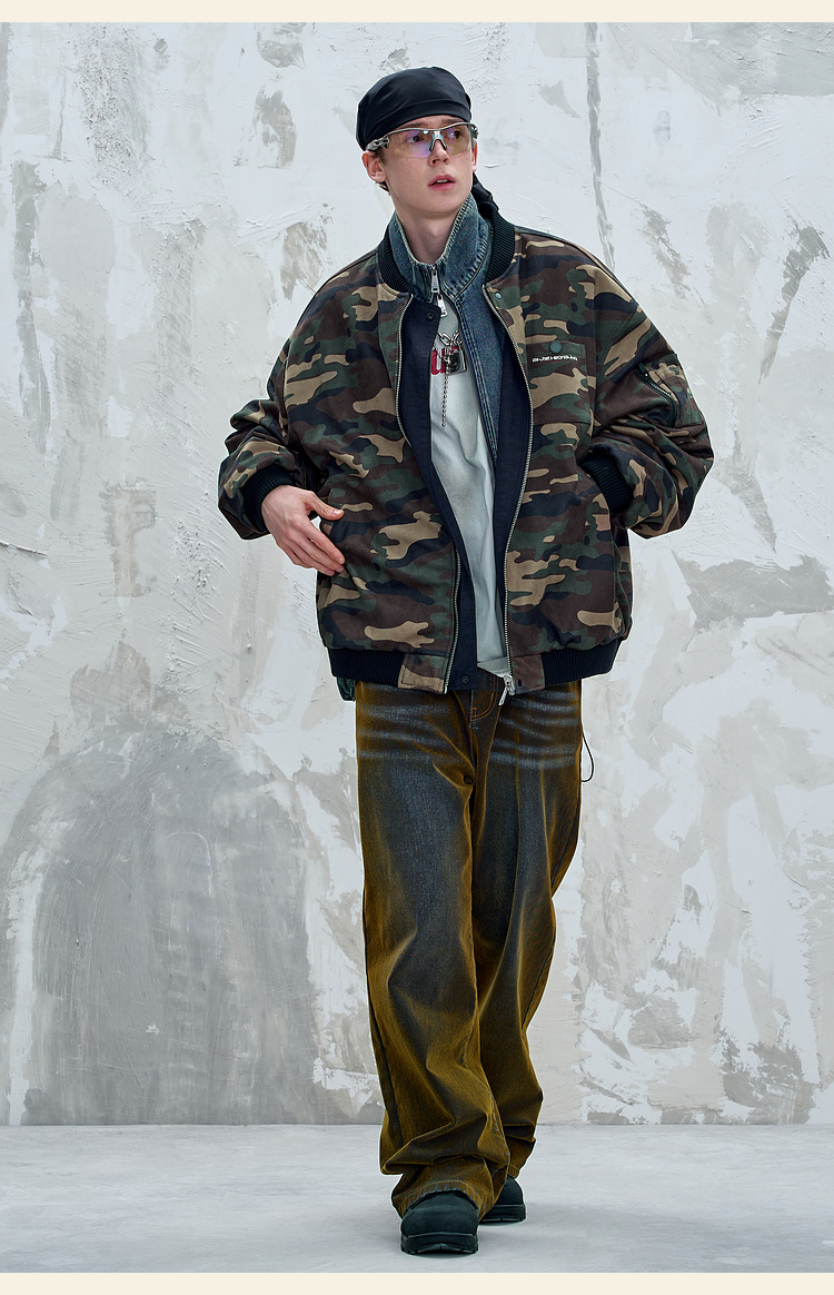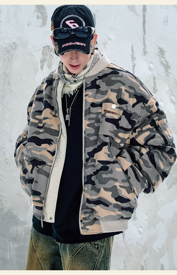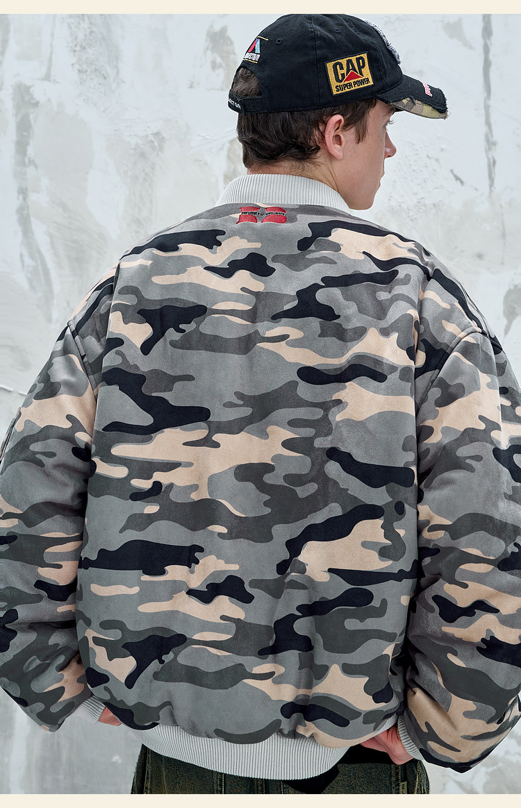 BJHG不计后果两面穿迷彩棉服男款冬季灯芯绒飞行外套加厚防寒棉衣
