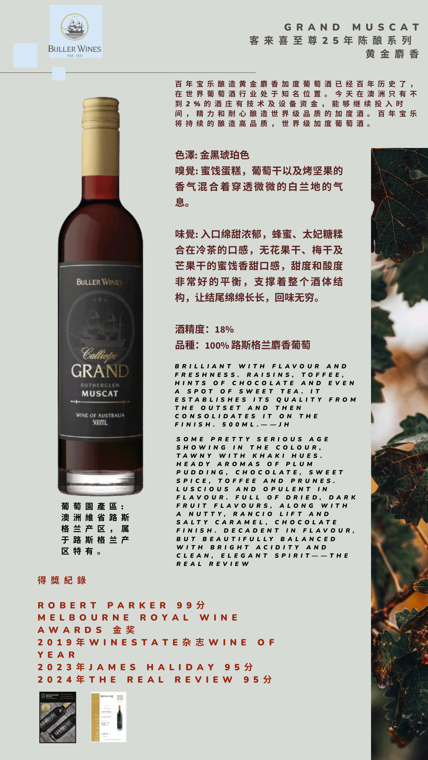 宝乐至尊25年陈酿系列黄金麝香葡萄酒500ml