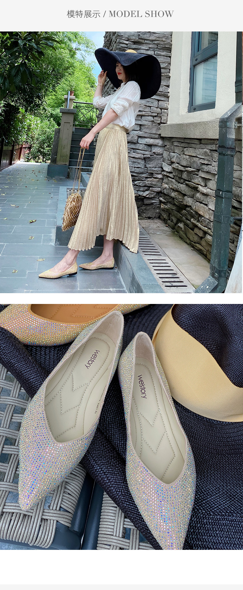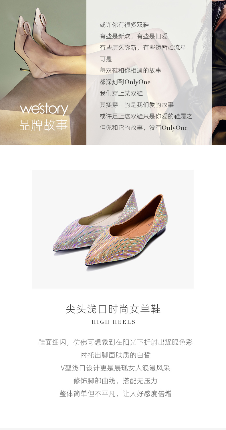 westory2020年秋新品浅口平底ins潮水钻单鞋W20CE70021