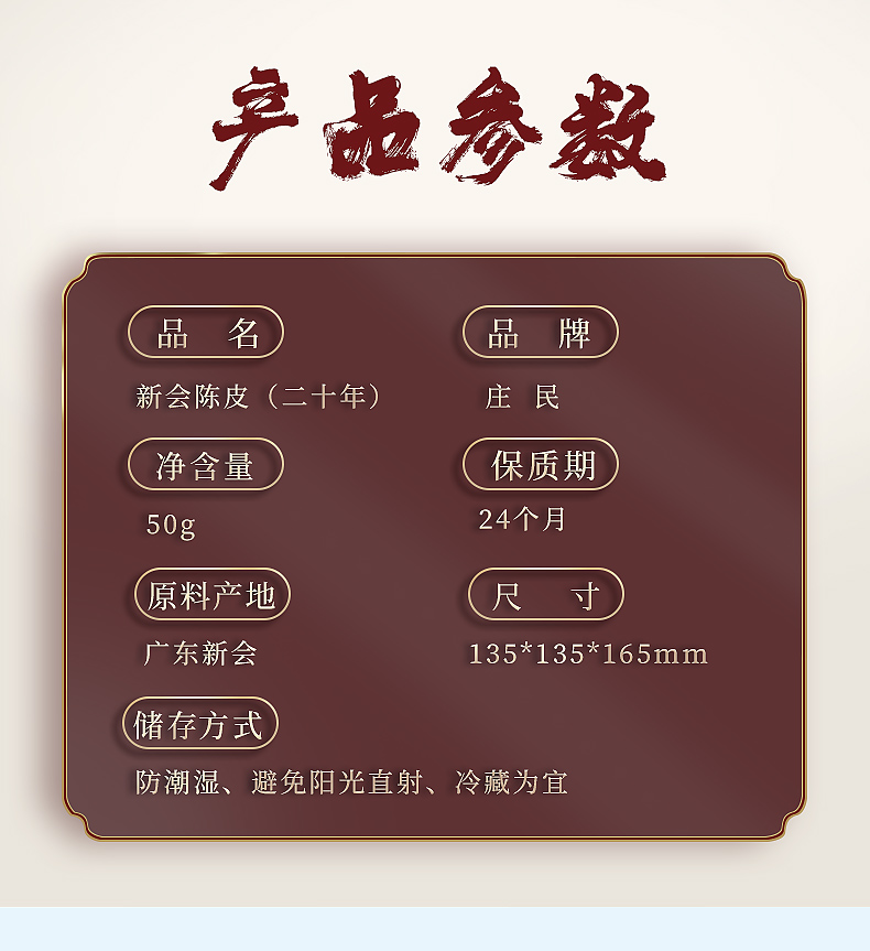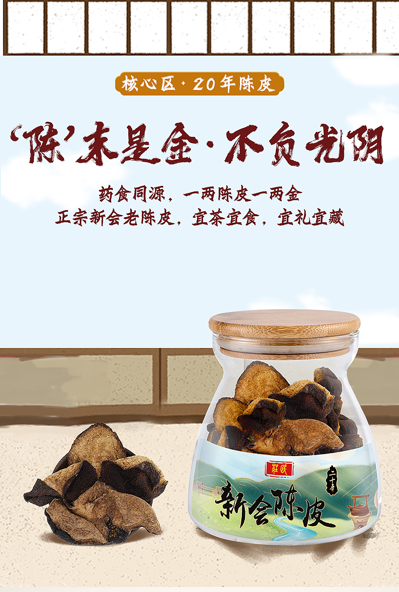 庄民陈皮 正宗二十年 新会老陈皮干 大红皮 泡水 50g/罐