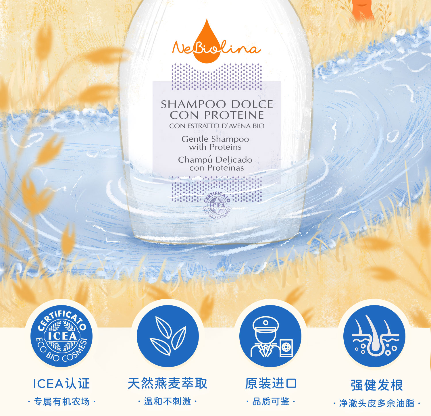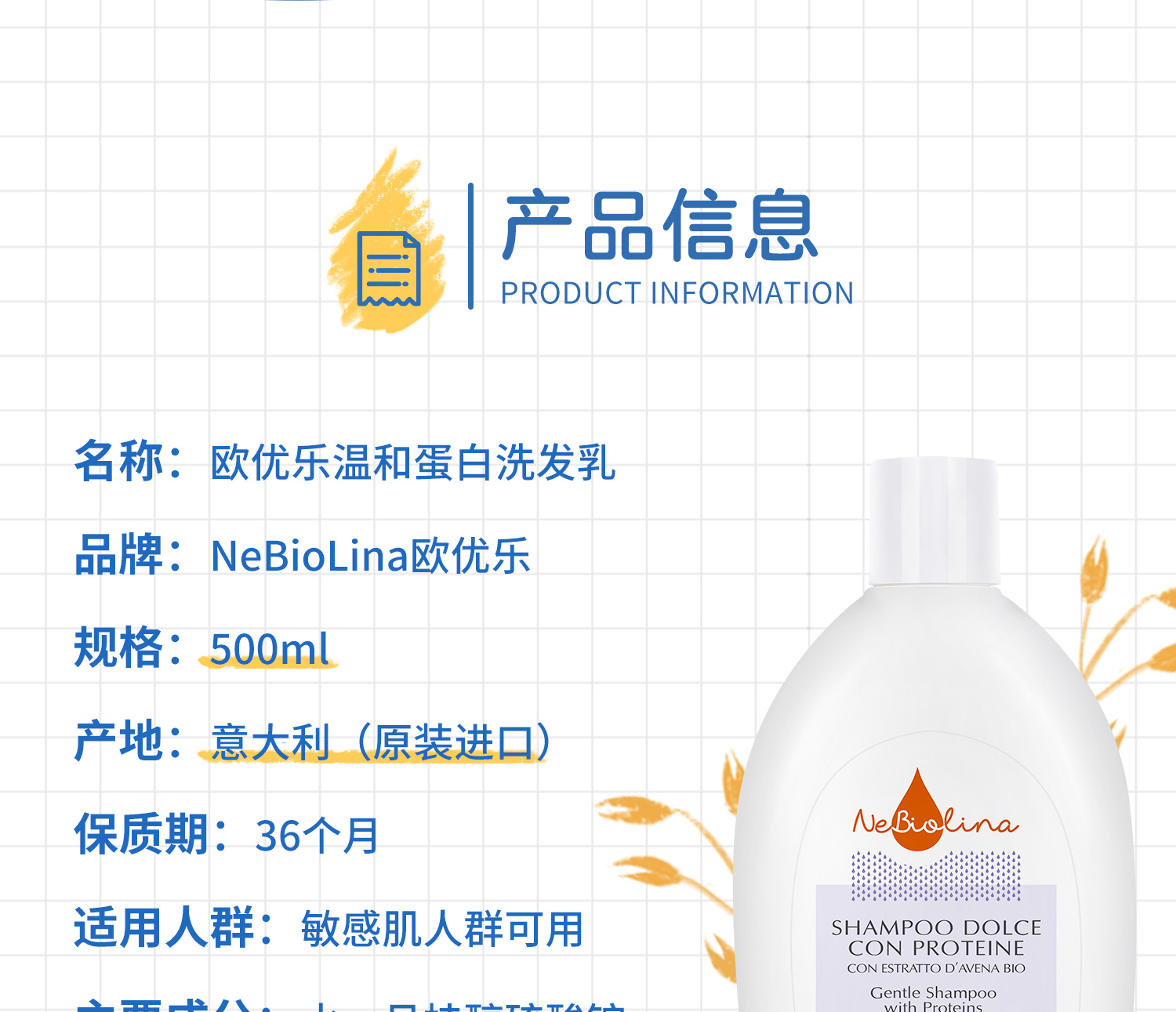 Nebiolina欧优乐成人洗发乳500ml意大利原装进口