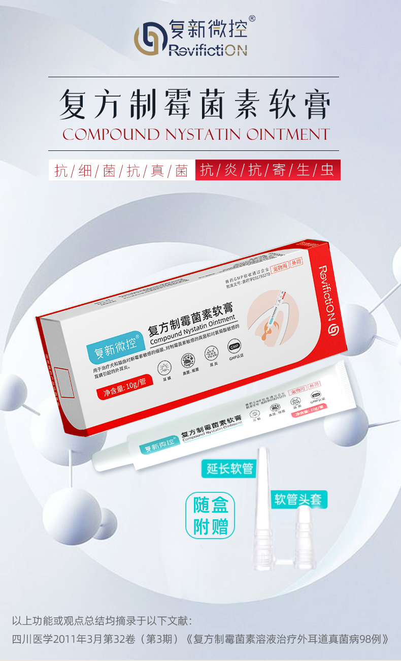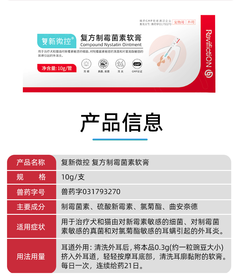 复新微控复方制霉菌素软膏犬猫用真菌感染耳炎耳痒耳螨猫用专用药