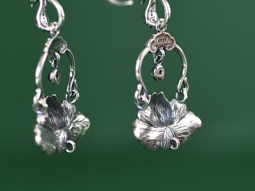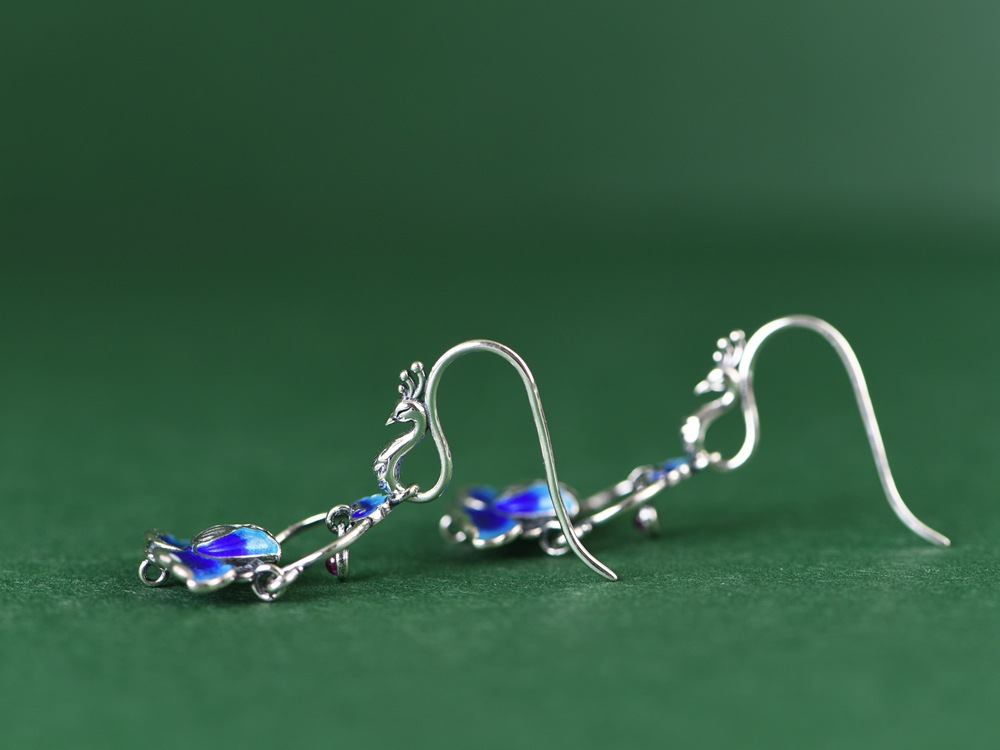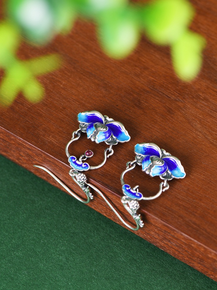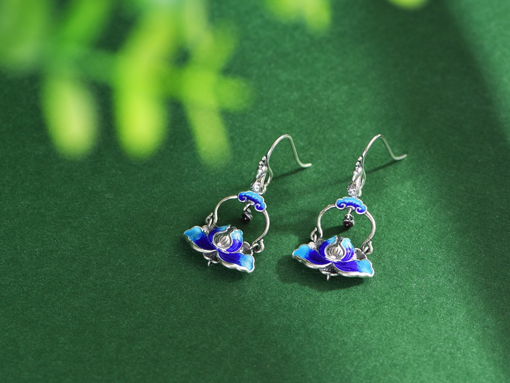 【踏波望莲】S925银珐琅景泰蓝工艺莲花耳坠【SCH-SY33253】