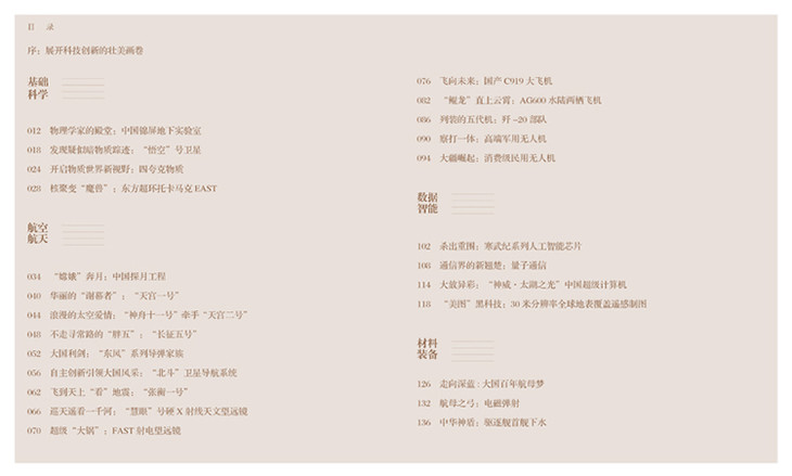 本书为国家重点主题出版项目,全书精选了近年来我国科技发展的重大科技突破和成果,共五十个案例,涉及基础研究、航空航天、信息技术、材料装备、交通运输、生命科学等重要领域。不仅运用了大量的图片和图表来普及科学,还专门绘制了表现精准的插画来丰富图书的内容,非常直观而又艺术化地展现了新时代的国之重器。打开这本图书,我们既可在文字中品读我国当代科技之进步、社会之发展,又可以在图画中领略这些大国重器的风采。这本图书的出版是科普创作形式的一次有益探索,也是科普表现形式的一次积极尝试。打开这本图书,如同打开了一幅展现我国当代科技创新发展成果的壮美画卷。
